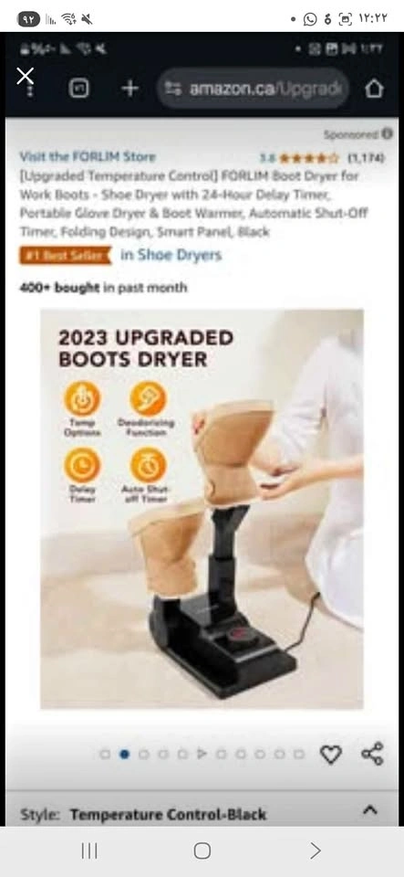 93FORLIM 2023 Long Shoe and Shoe Dryer - Black 3 Developed Temperature Modes: You can choose between hot air, warm air, or natural air, making it safe for all kinds of materials (skin, fabric, industrial materials) without fear of damage or contraction. Innovative