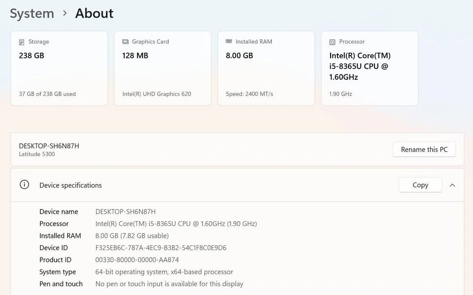 Dell Latitude 5300 – i5 8GB RAM 256GB SSD Windows 11 Pro