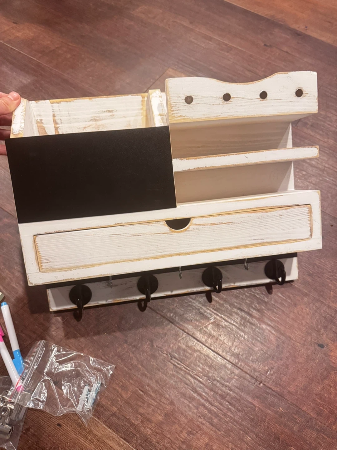 Declutter your entryway with this handy organizer! It features a chalkboard, mail slots, and hooks for keys or coats. It's in great condition and ready to help you stay organized
