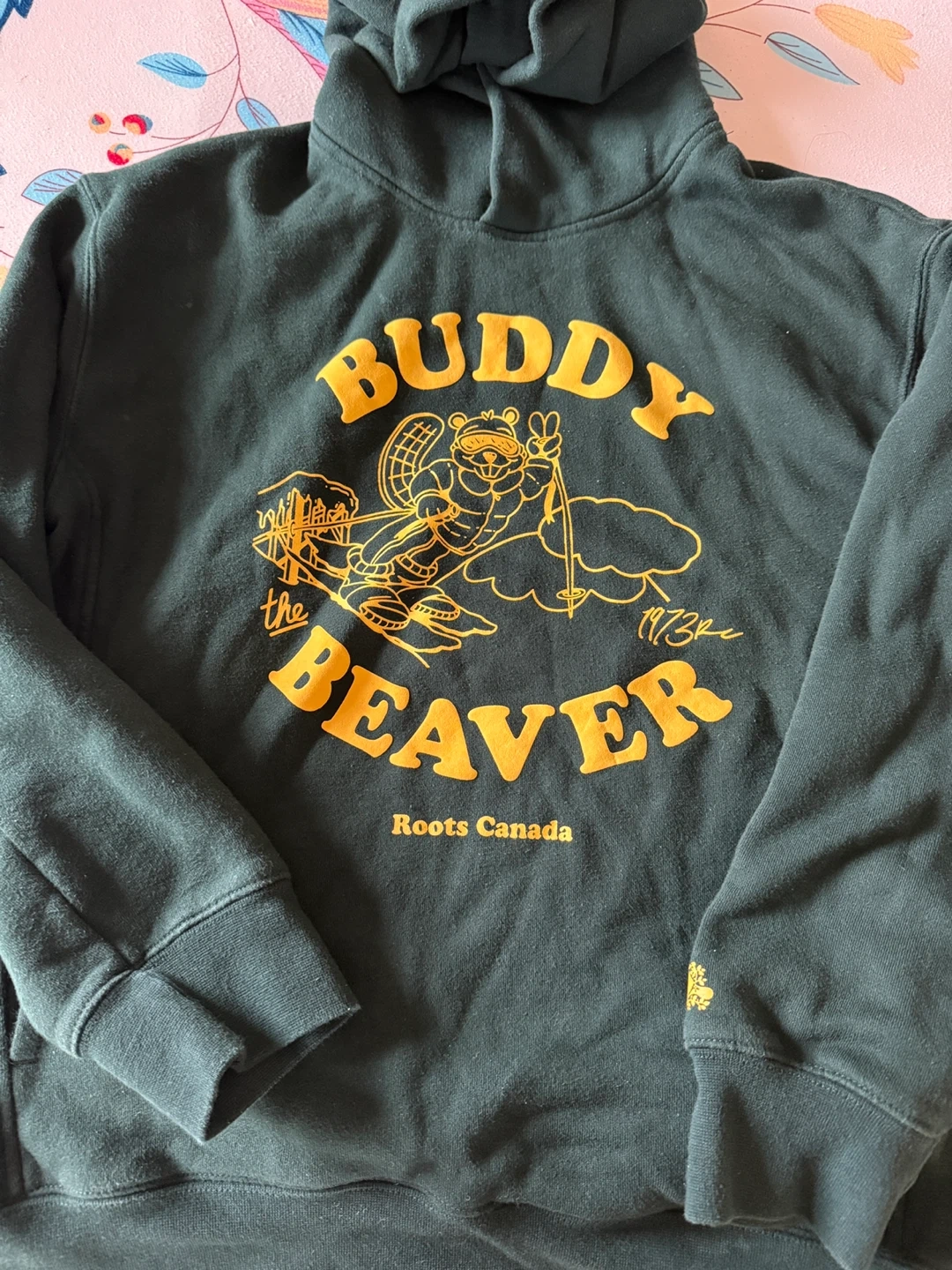 Cozy Roots Canada hoodie featuring Buddy the Beaver! It's in great condition and perfect for staying warm on chilly days. The classic design adds a touch of Canadian charm to any outfit.