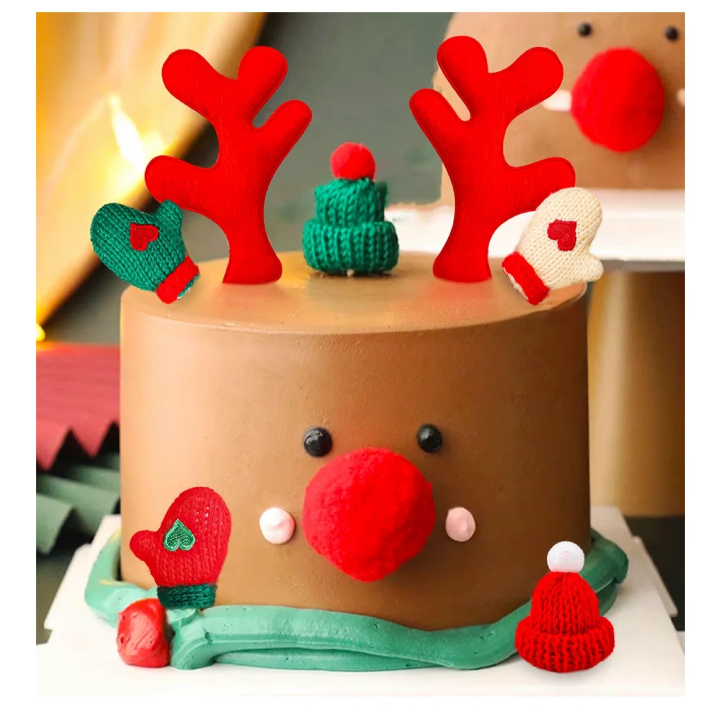 Brand new Christmas cake topper decoration set! Includes reindeer antlers, mittens, and hats to make your holiday cake extra festive