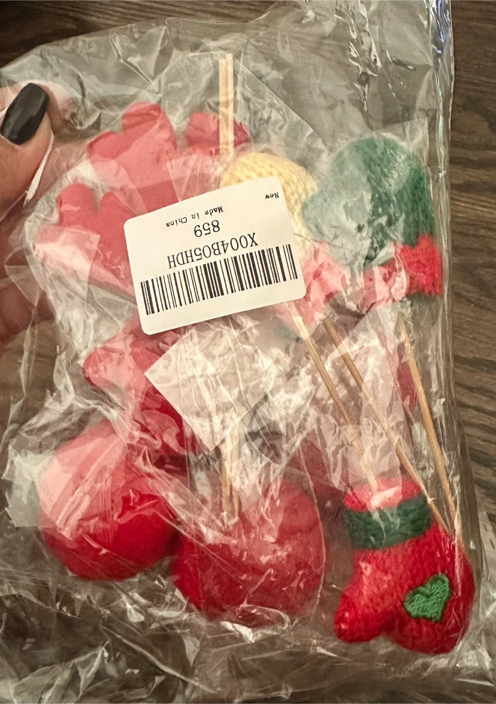 3 x Christmas Hat cake toppers, 3 x Christmas gloves cake toppers, 2 x deer antlers cake toppers, 2 x red nose ball cake toppers