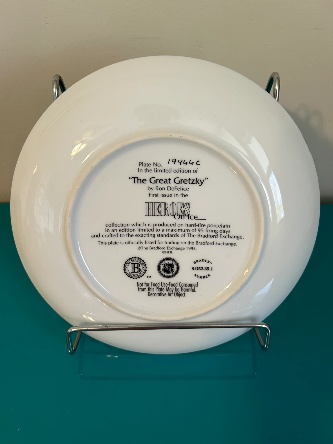 Limited edition “The Great Gretzky” collector plate, first issue in the Heroes on Ice series by artist Ron DeFelice.