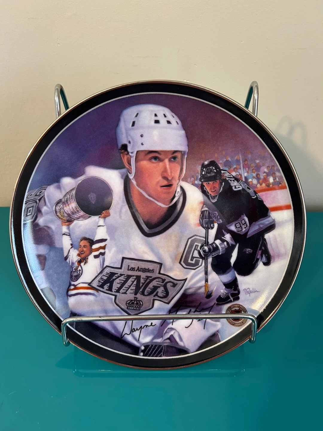 Produced by The Bradford Exchange in 1995, this officially licensed NHL collectible celebrates Wayne Gretzky’s legendary career with the Edmonton Oilers and Los Angeles Kings.