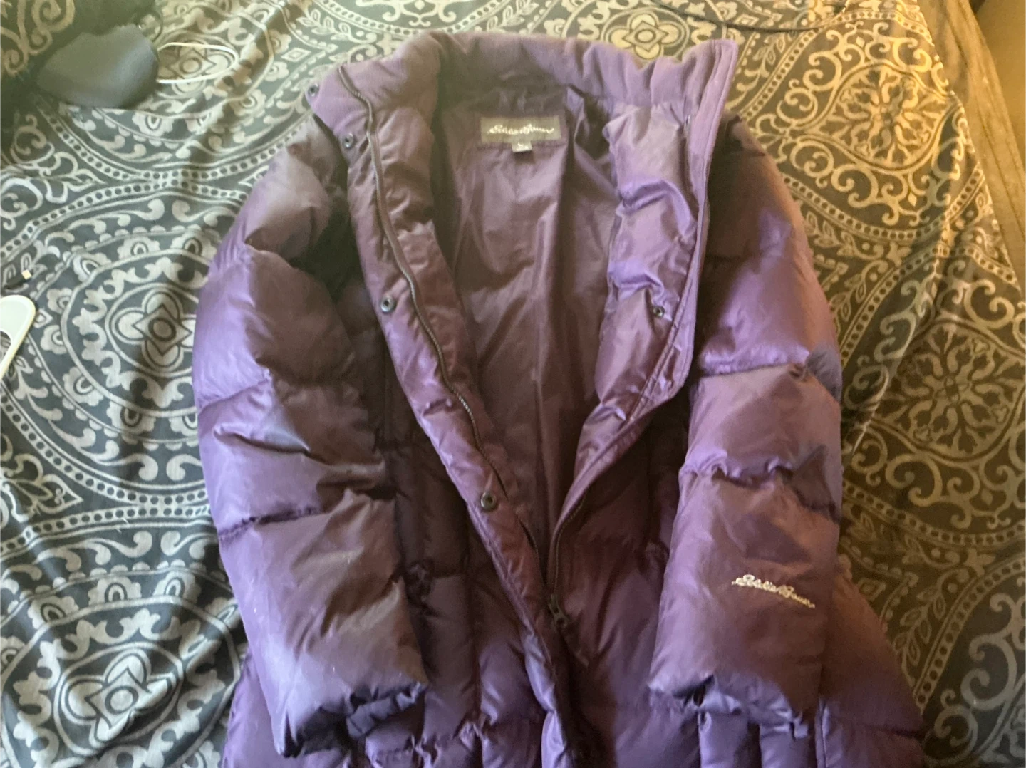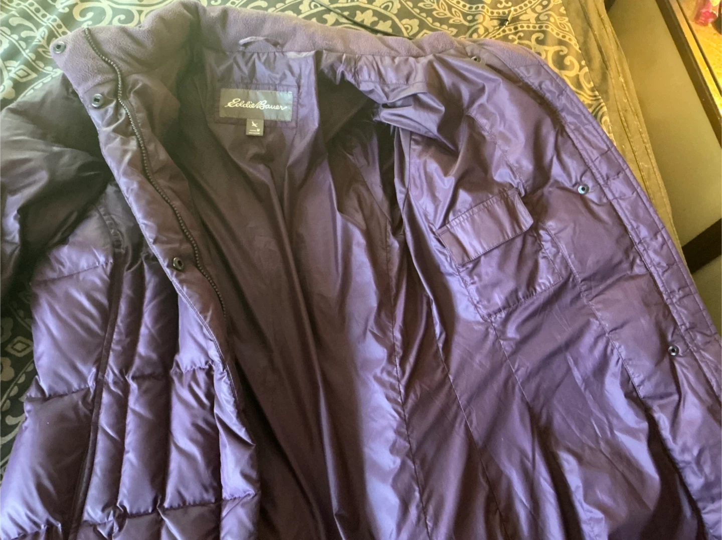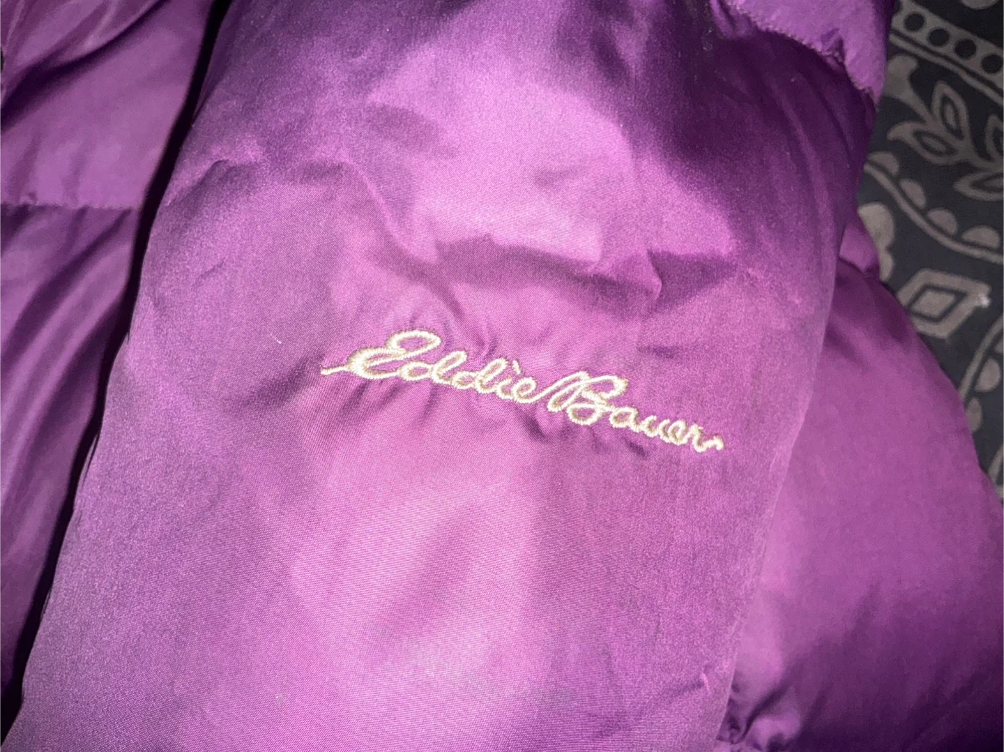 Eddie Bauer down puffer coat in a lovely shade of purple! It's in great condition and ready to keep you warm and stylish this winter