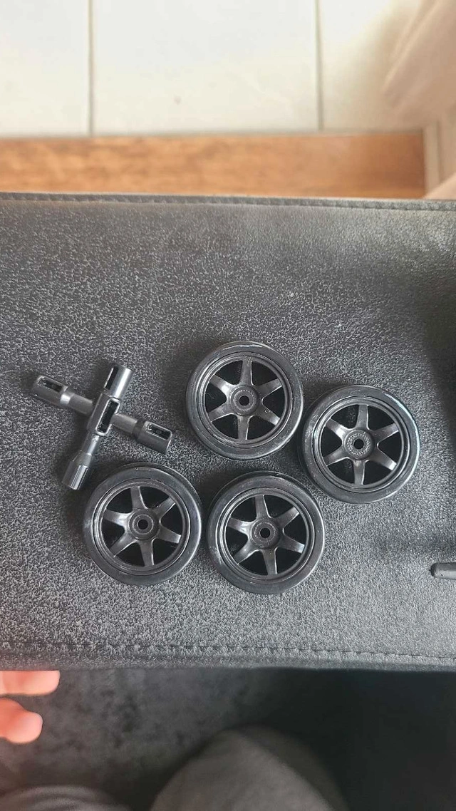 Drift rc car that comes with drift and road tires, controller, battery, charger and tool. Used with almost no wear and no damage. Can be used for drifting and regular racing