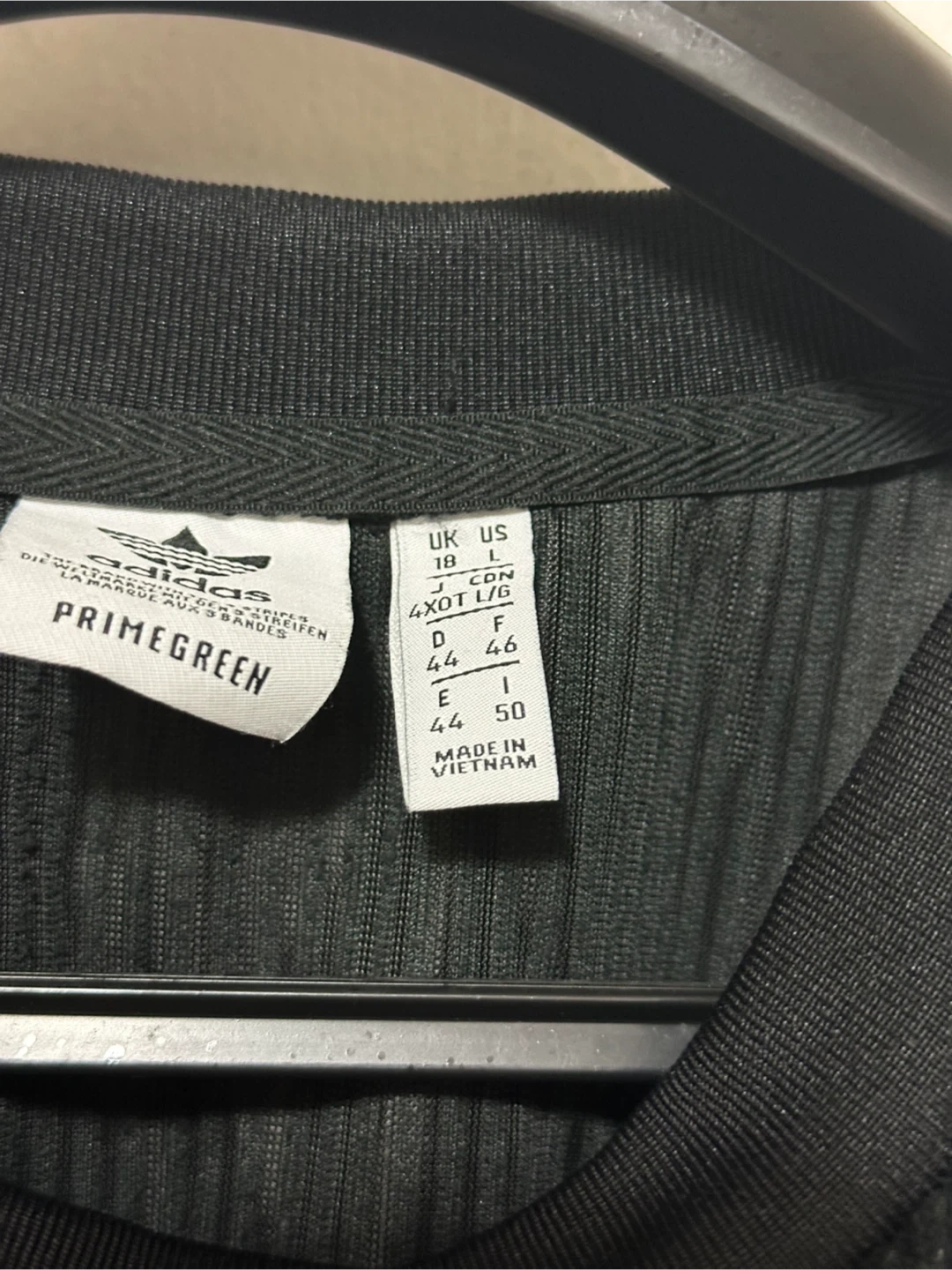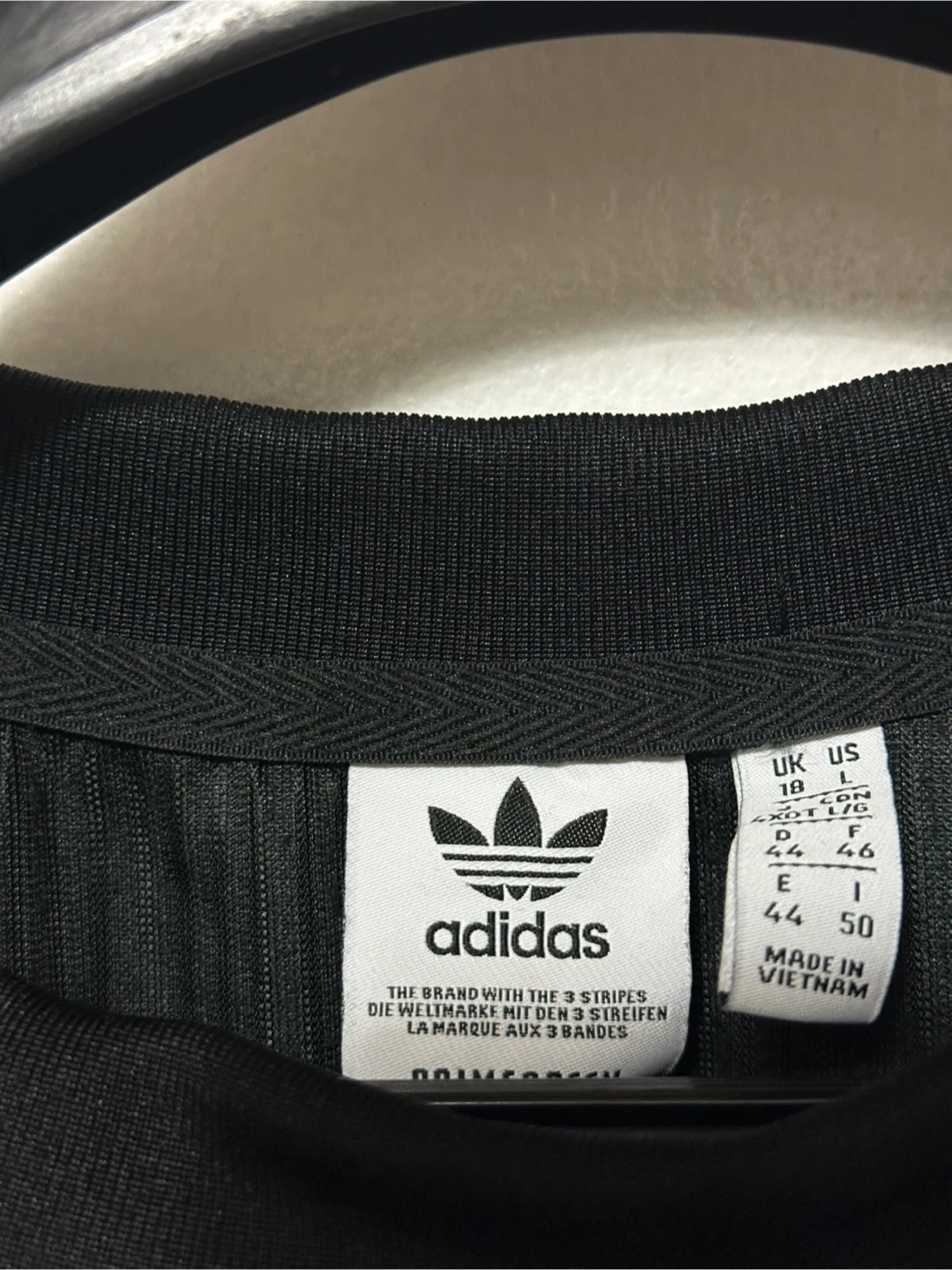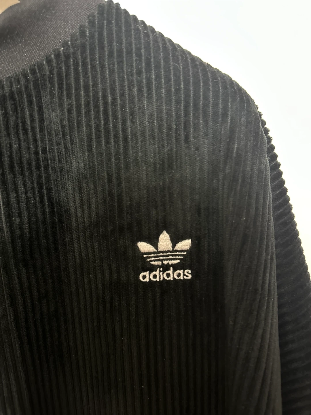 Selling a stylish Adidas black corduroy pullover! It features the classic three stripes on the sleeves and the Adidas logo on the chest. Women’s size Large