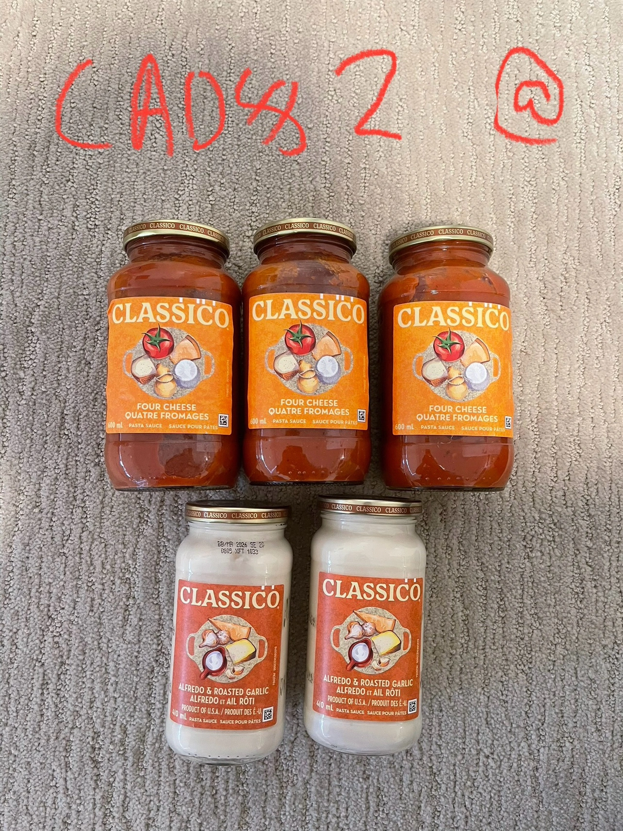 Buy & SellClassico Pasta Sauce, Cheese & AlfredoClassico Pasta Sauce, Cheese & Alfredo$2Selling Classico pasta sauce. There are 3 jars of Four Cheese and 2 jars of Alfredo & Roasted Garlic.WHERE TO MEETSteveston community centerView MapSELLERLiSteveston120 reviews0 chats·0 favorites·5 views