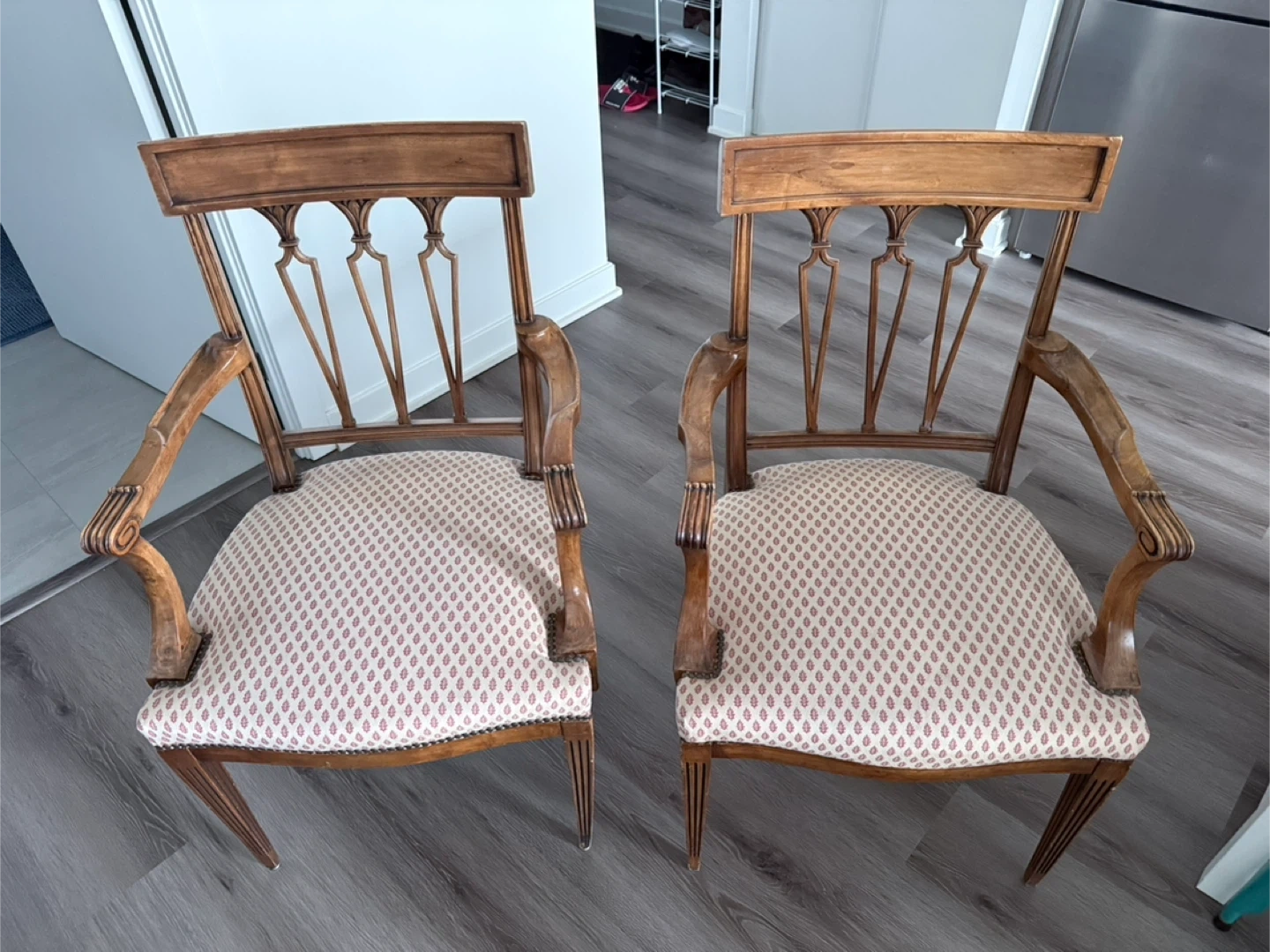 Selling a set of two antique arm chairs. They have a unique design and would look great in any home. The chairs are in good condition and ready for a new home! Price for both units, no low ballers please.