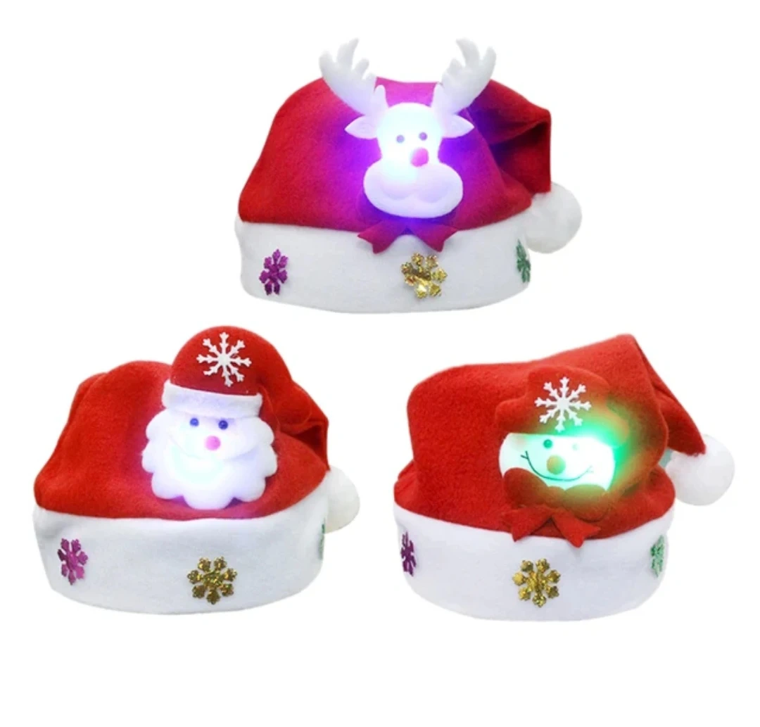 Get into the holiday spirit with these fun Christmas hats! Each hat features a festive design with LED lights, perfect for adding some sparkle to your celebrations. They're great for kids and adults alike!