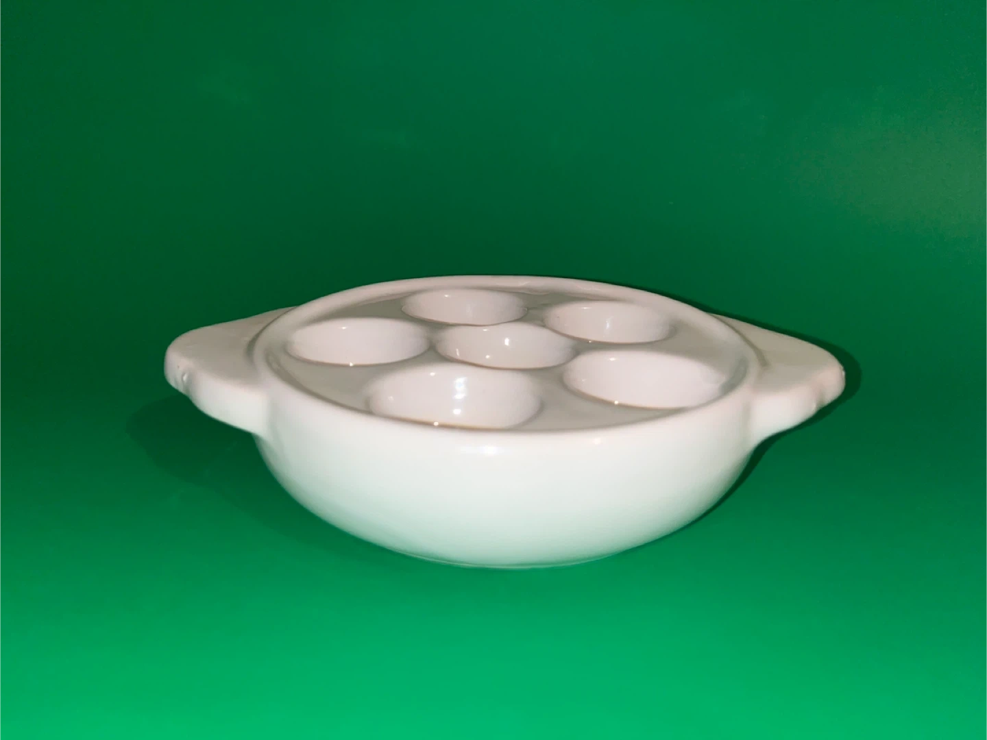 Selling a white ceramic escargot dish! It looks like it's in great condition and ready for your next dinner party. Perfect for serving up some delicious escargots