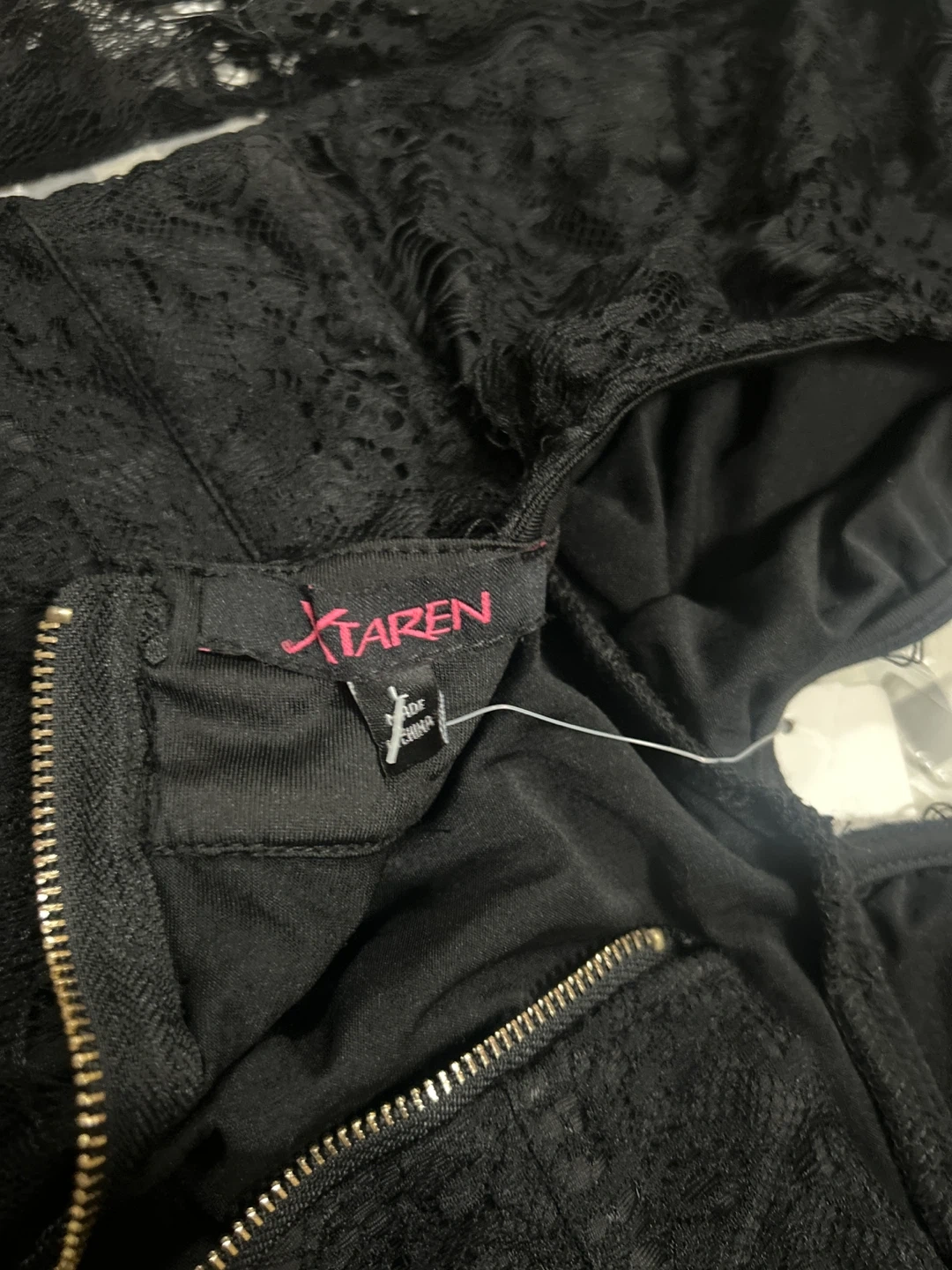 Selling a Forever 21 black lace deep V dress in size L. The dress features a long sleeve design and is in great condition. Originally bought for $58!