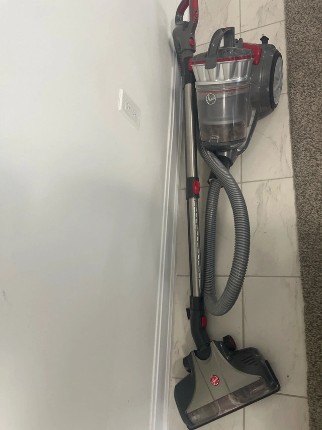 I'm selling a gray and red Hoover vacuum in used condition that’s perfect for quick cleanups around the house. It has strong suction and a lightweight design, making it easy to manoeuvre. While it's been well-used, it's still got plenty of life left for someone looking for a reliable cleaning tool! * Lightweight design for easy handling * Strong suction power * Easy-to-empty dust canister. If the ad is still up, yes, it's available!