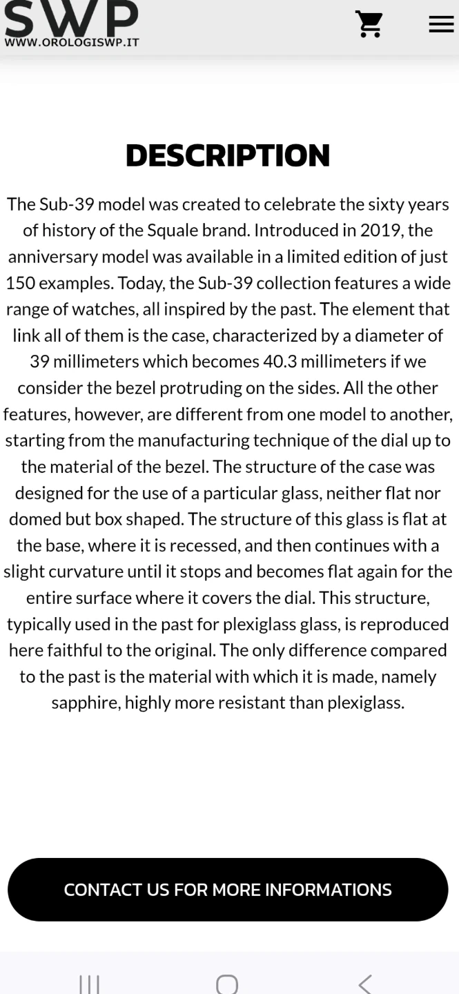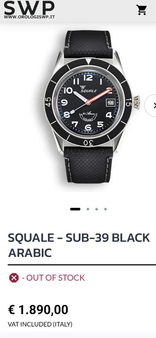 Selling a Squale Sub-39 Black Arabic watch. This model was created to celebrate the sixty years of history of the Squale brand. The diameter of the watch case is 39 millimeters, which becomes 40.3 millimeters if we consider the bezel protruding on the sides. The glass is flat at the base, where it is recessed, and then continues with a slight curvature until it stops and becomes flat again for the entire surface where it covers the dial