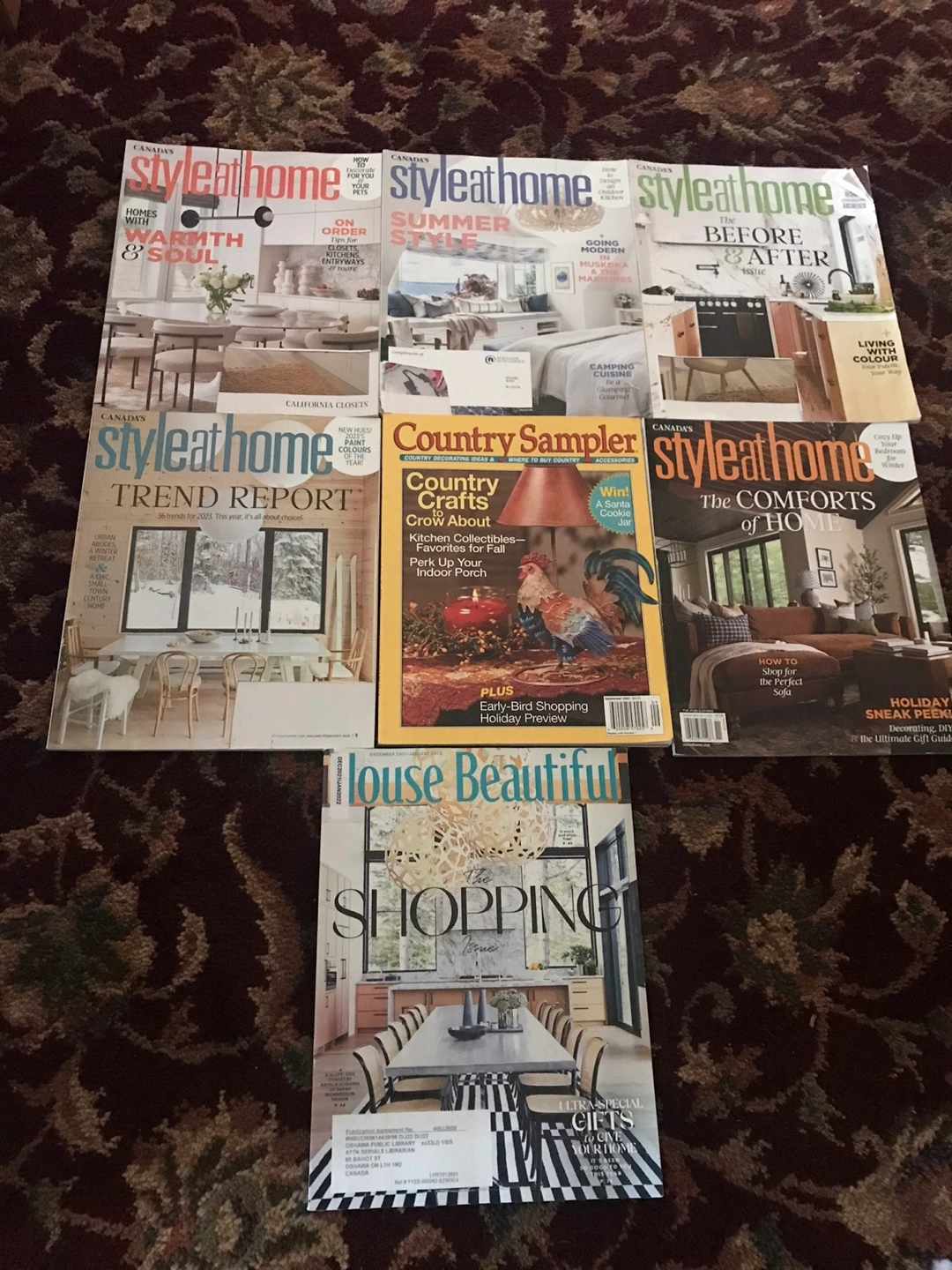 Selling a collection of home decor magazines, including Style at Home, Country Sampler, and House Beautiful. Great for design inspiration and ideas for your home projects