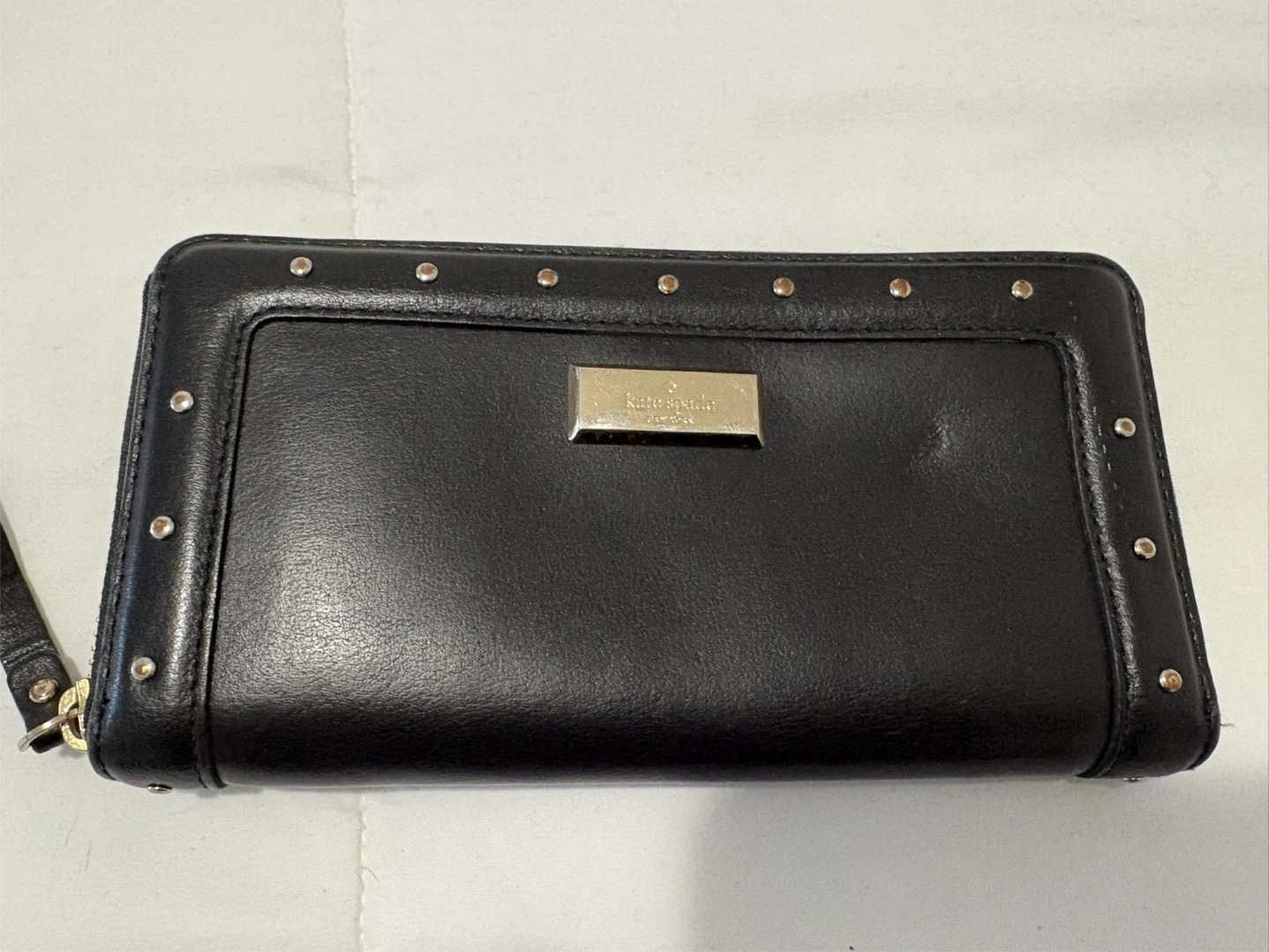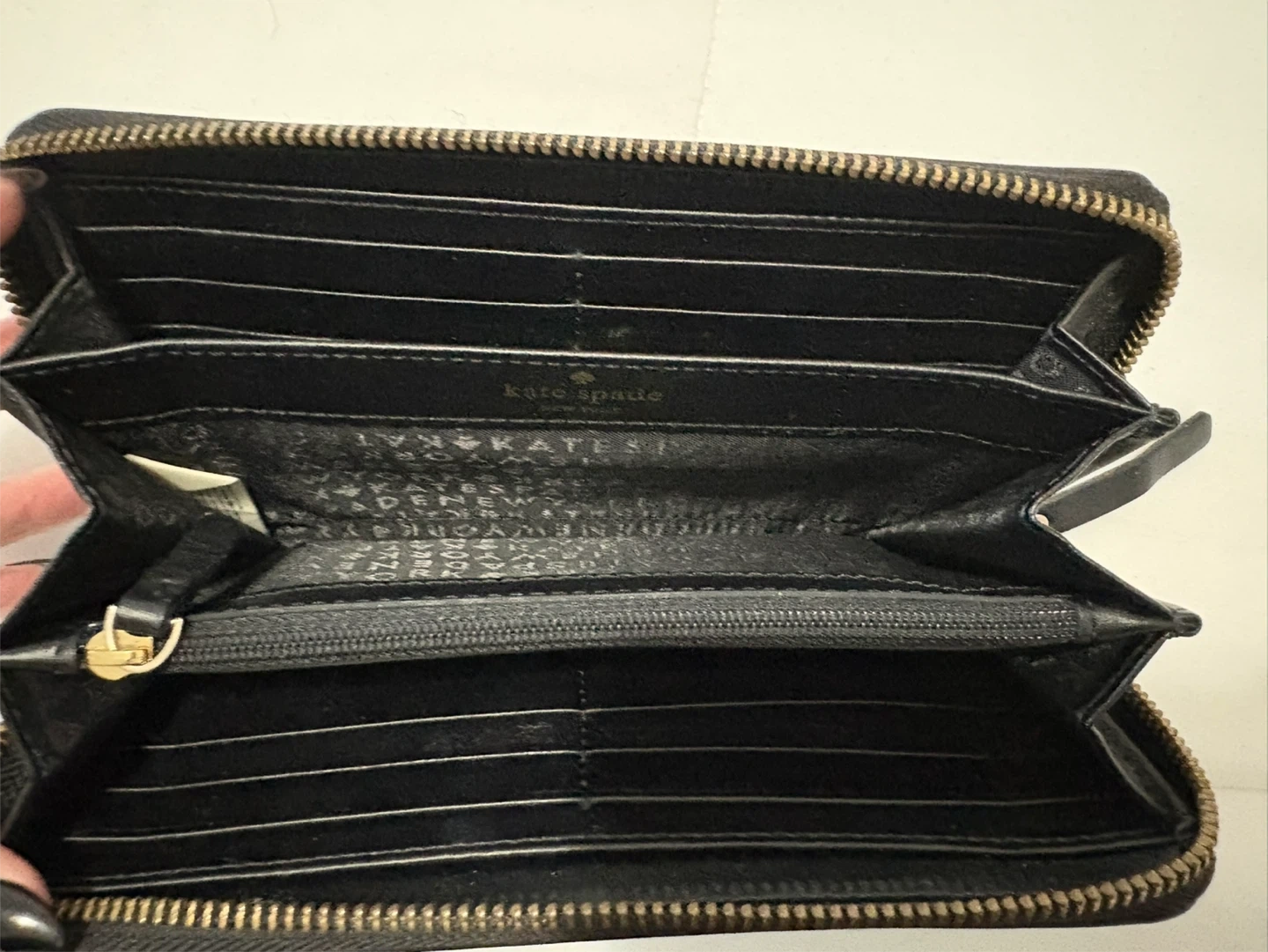 Selling a Kate Spade black leather wallet. It's in great condition and has lots of space for cards and cash. Perfect for everyday use!