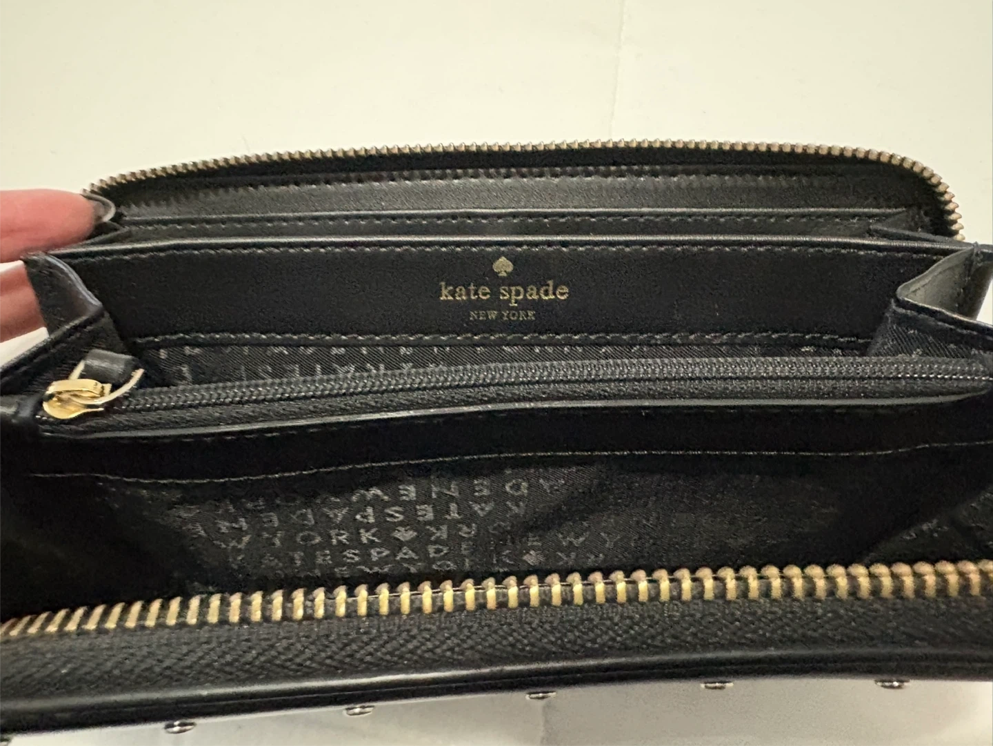 Selling a Kate Spade black leather wallet. It's in great condition and has lots of space for cards and cash. Perfect for everyday use!
