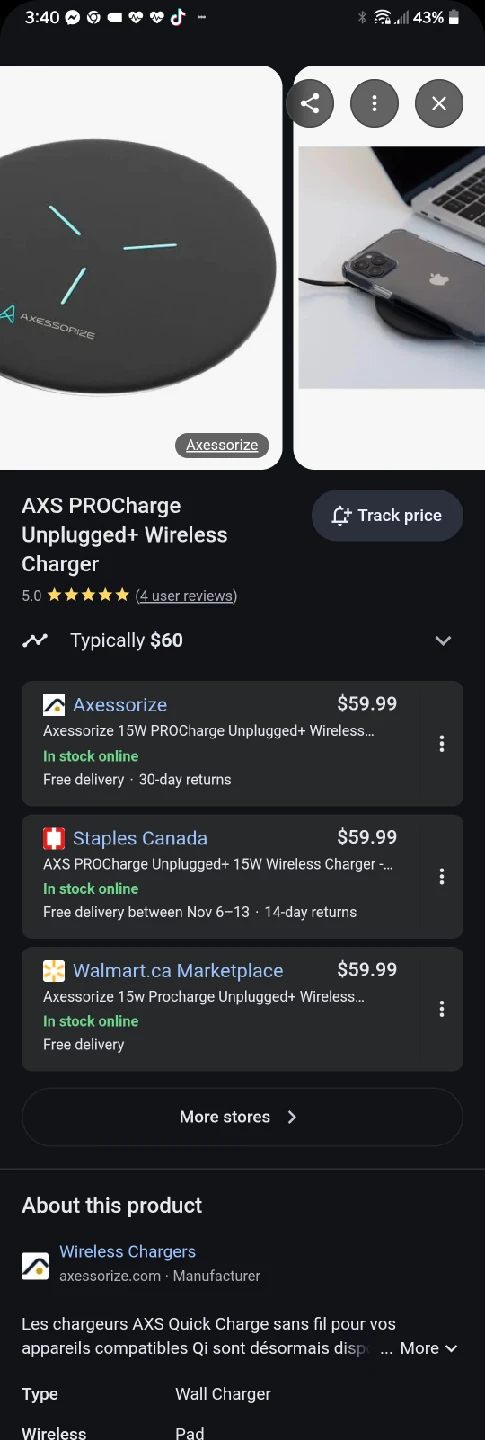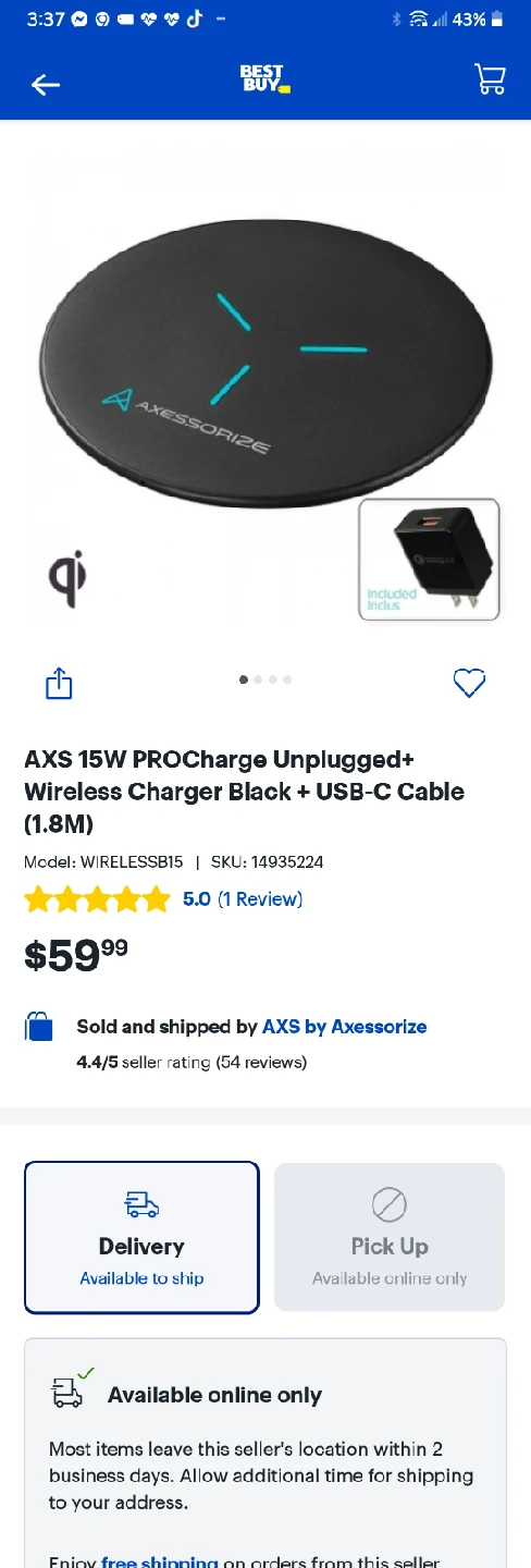 The Axessorize 15W PROCharge Unplugged+ Wireless Charger can be purchased from various retailers including Axessorize's official website, Staples, and Best Buy. The price for the wireless charger alone is typically around CA$59.99.