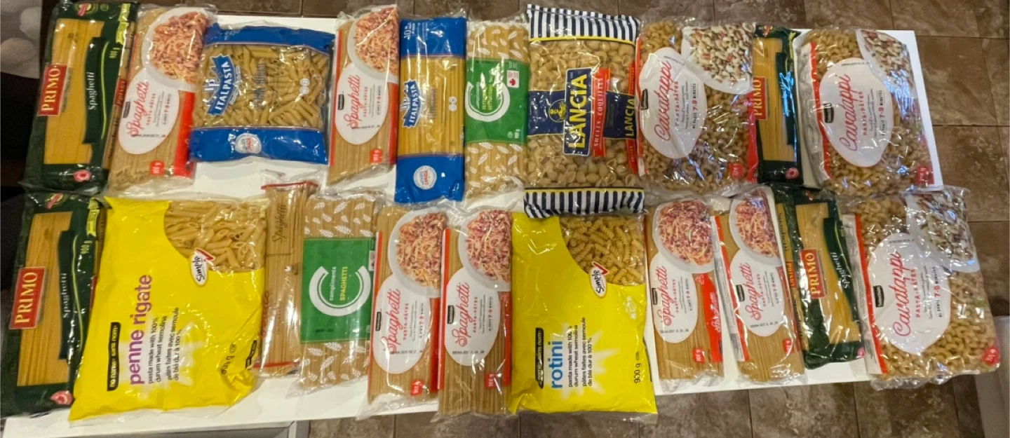 Selling a variety of pasta, including spaghetti, penne rigate, rotini, and cavatappi! Brands include Primo, Italpasta, Simple, Lancia, and Compliments. Perfect for stocking up your pantry!