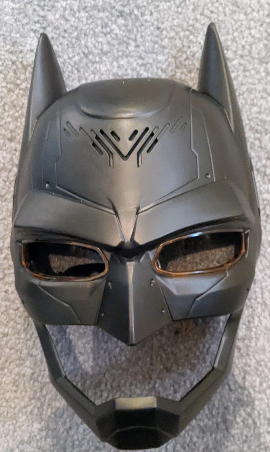 100Sound just like Batman with the Bat-Tech Voice-Changing Mask. This interactive role-play mask fits right over your head and features blue light-up eyes and over 15 sounds. With a built-in voice changer, speak normally and the mask will magically change your voice to sound like Batman. Get ready for battle by pressing the button on the side of the mask to hear different sounds and activate the lights. With authentic details and adjustable straps for a custom fit, slide on this high-tech cowl and become the Caped Crusader instantly. Have hours of fun playing out your own Batman missions and battles with the Bat-Tech Voice-Changing Mask. For even more Super Hero fun, add the Batman Bat-Tech Gauntlet to your Batman Role-Play collection (sold separately). Speak like Batman with the Bat-Tech Voice-Changing Mask.