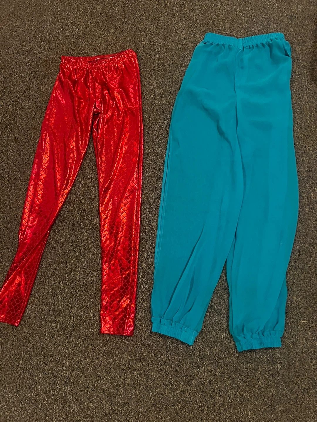 70Selling a pair of fun kids' pants! There are red mermaid-scale leggings and a pair of blue harem-style pants. Great for dress-up or play! I have lots of Halloween costumes $2 and up each