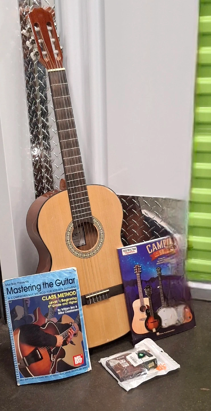 Selling a Denver acoustic guitar, complete with a case and some books to get you started! Perfect for beginners or anyone looking for a reliable instrument. The guitar is in great shape and ready to play. Includes guitar case books and clip-On Capo - easy to clip on guitar and quick to change for easy tuning.