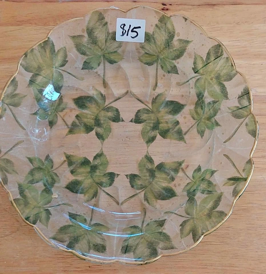 A unique handmade glass applique bowl, pretty ivy leaf pattern. Not a serving dish, but good for candies or keys or whatnot. Makes a nice hostess gift. Pick-up in Langford near Happy Valley Road. Cash only please.