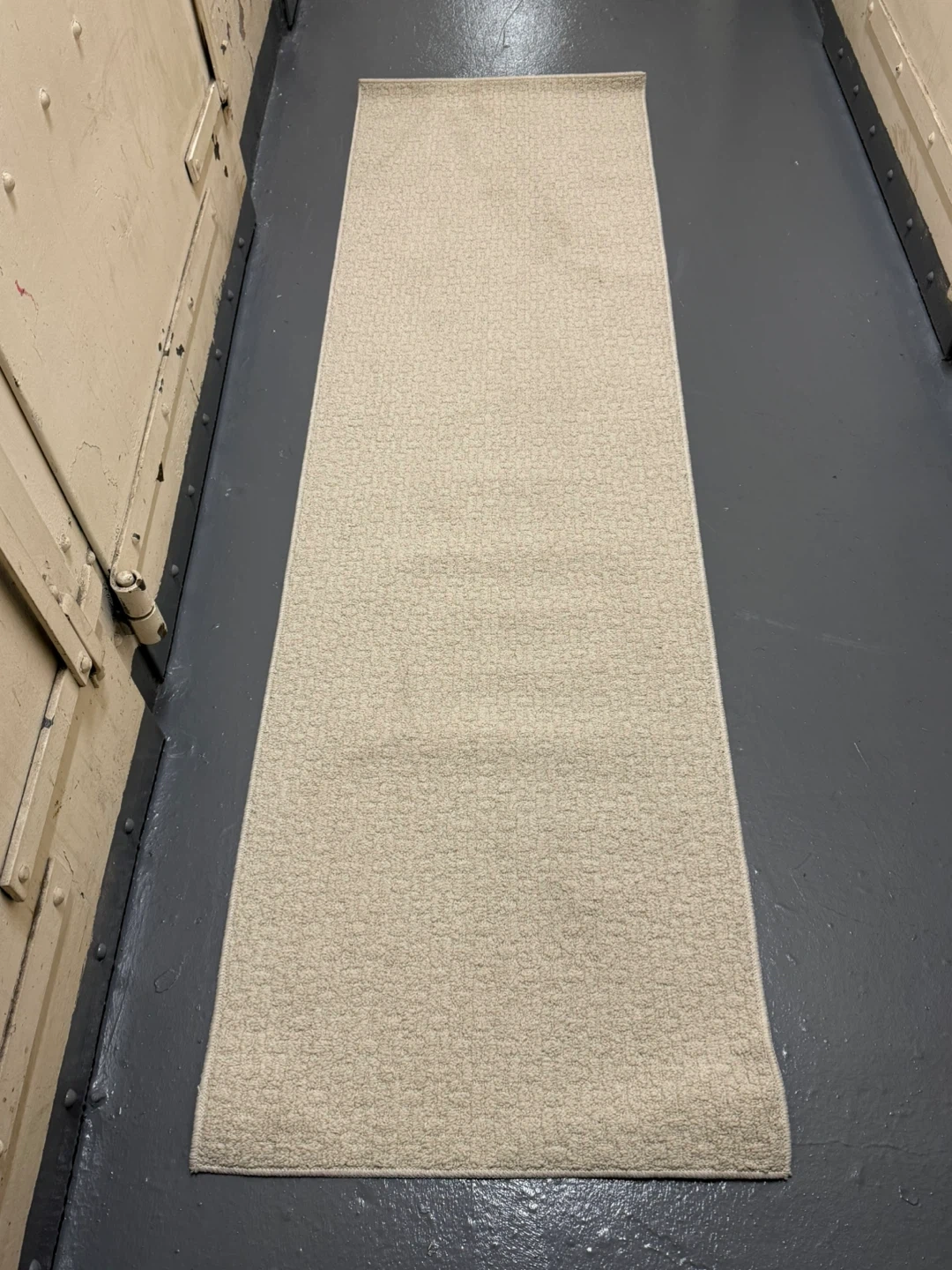 Selling a Threshold beige textured runner rug. It is a tufted rug with latex backing that can be machine washed for easy cleaning. It's in great condition and ready to add some warmth to your space! It's a neutral color, so it will match any decor. The rug has some dark spots from furniture it leaned on. It easily washes or wipes off.