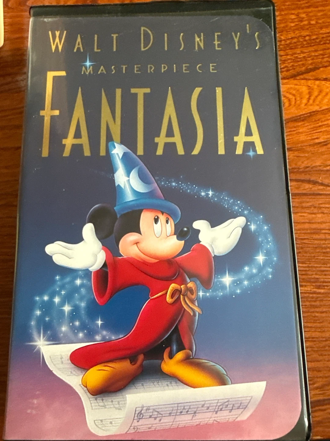 Selling a Walt Disney's Fantasia VHS tape! It's a classic animated masterpiece featuring Mickey Mouse as The Sorcerer's Apprentice and music by Leopold Stokowski and the Philadelphia Orchestra. Running time is 120 minutes. A great addition to any Disney collection!