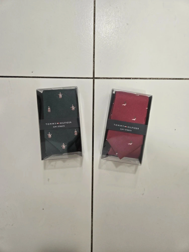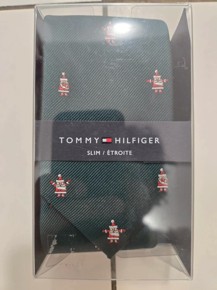 I have a brand new, in-box Tommy Hilfiger slim tie for sale! It features a fun Christmas-themed pattern. The box is included! Great Christmas present.