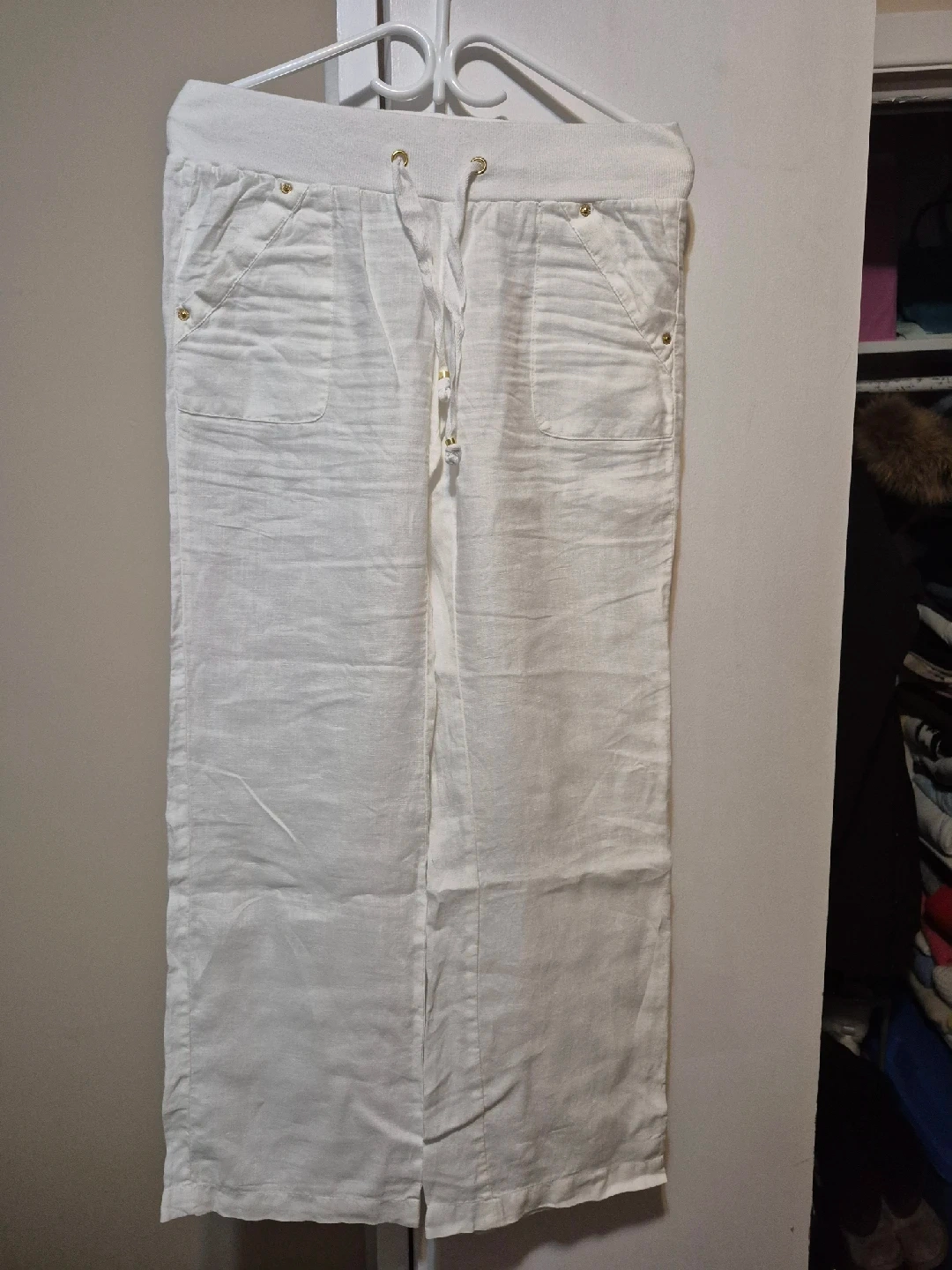 885Selling a pair of Guess linen pants. They are a size small and come in both white and blue. Perfect for a casual summer look!