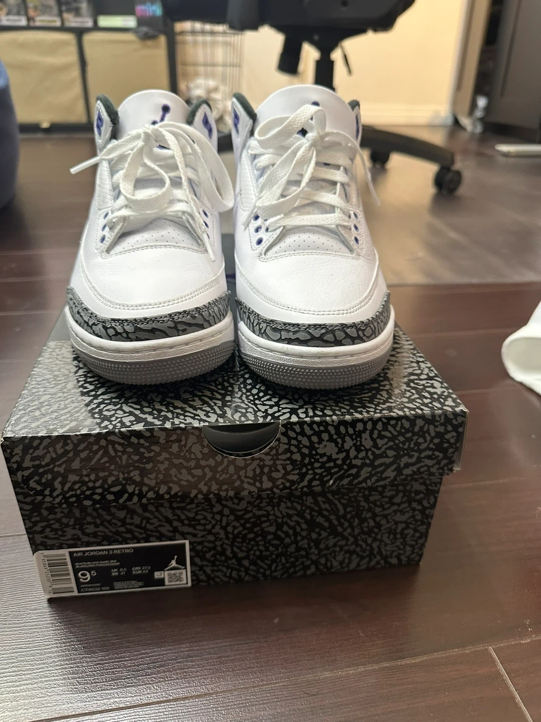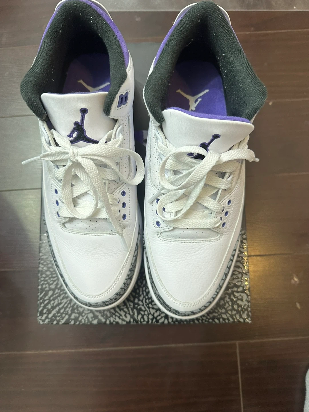 Buy & SellAir Jordan 3 Retro White/Purple Size 9.5Air Jordan 3 Retro White/Purple Size 9.5$180Selling a pair of Air Jordan 3 Retro sneakers in white and purple, size 9.5. They come with the original box!ConditionLike newSize9.5BrandAir JordanWHERE TO MEETCheck LocationView MapSELLERverifiedKeaneKincora600 reviews1 chats·0 favorites·41 views