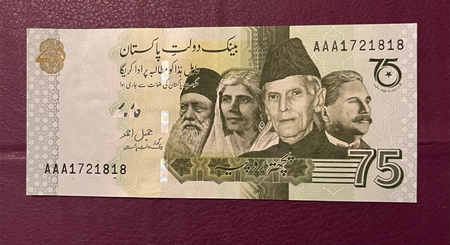 284Available only six days 2022 Selling a Pakistan 75 Rupees banknote featuring "75 Years of Independence".