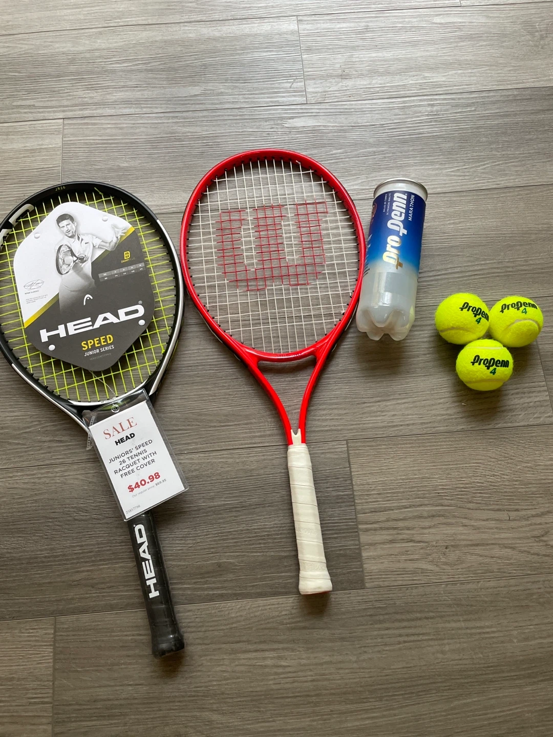 Selling a Head Juniors' Speed 26 tennis racquet with a free cover! The original price was $40.98. Brand new, never used. Brand new balls + used racket all for $40