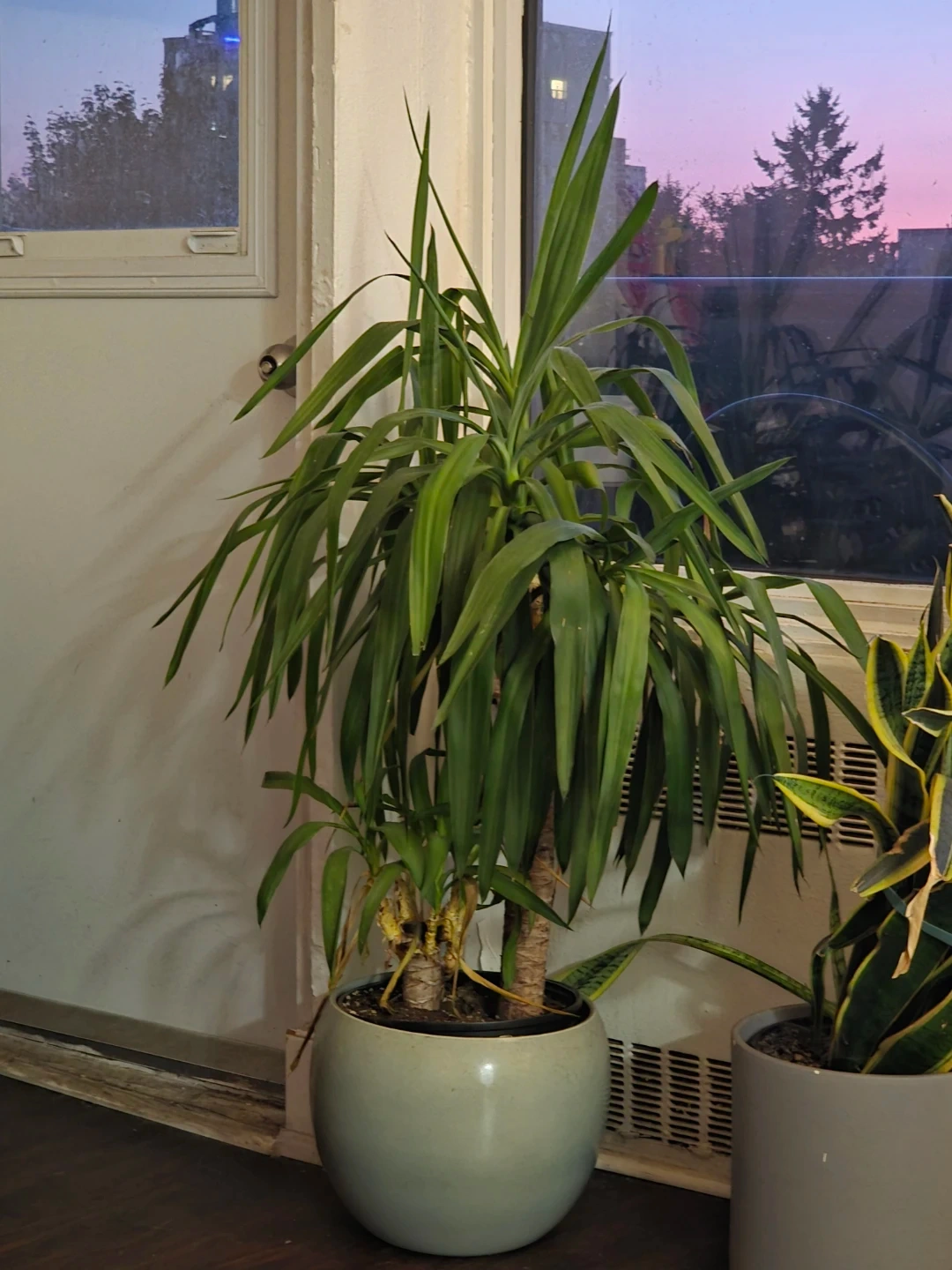 Selling a healthy tall yucca plant, which has been part of the family for 4 years. This plant is very low maintainence, as low watering required, once in a week or ten days in summers and once in two weeks of longer in colder months. It will add a touch of greenery to any room. We have been to traveling for a month and this was still thriving as long as it's getting enough sun. We kept it in a west facing home, so getting good amount of sun.