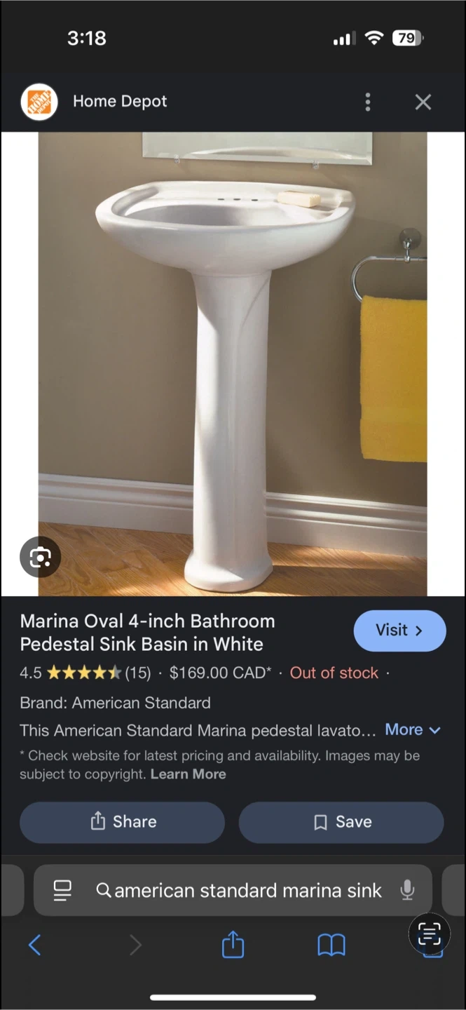 Buy & SellAmerican Standard Marina Pedestal Sink - WhiteAmerican Standard Marina Pedestal Sink - White$100Selling an American Standard Marina pedestal sink in white. It's still in the box and ready for your bathroom! This is the Marina Oval 4-inch model.WHERE TO MEETCheck LocationView MapSELLERverifiedAmySecord Woods1104 reviews0 chats·0 favorites·2 views