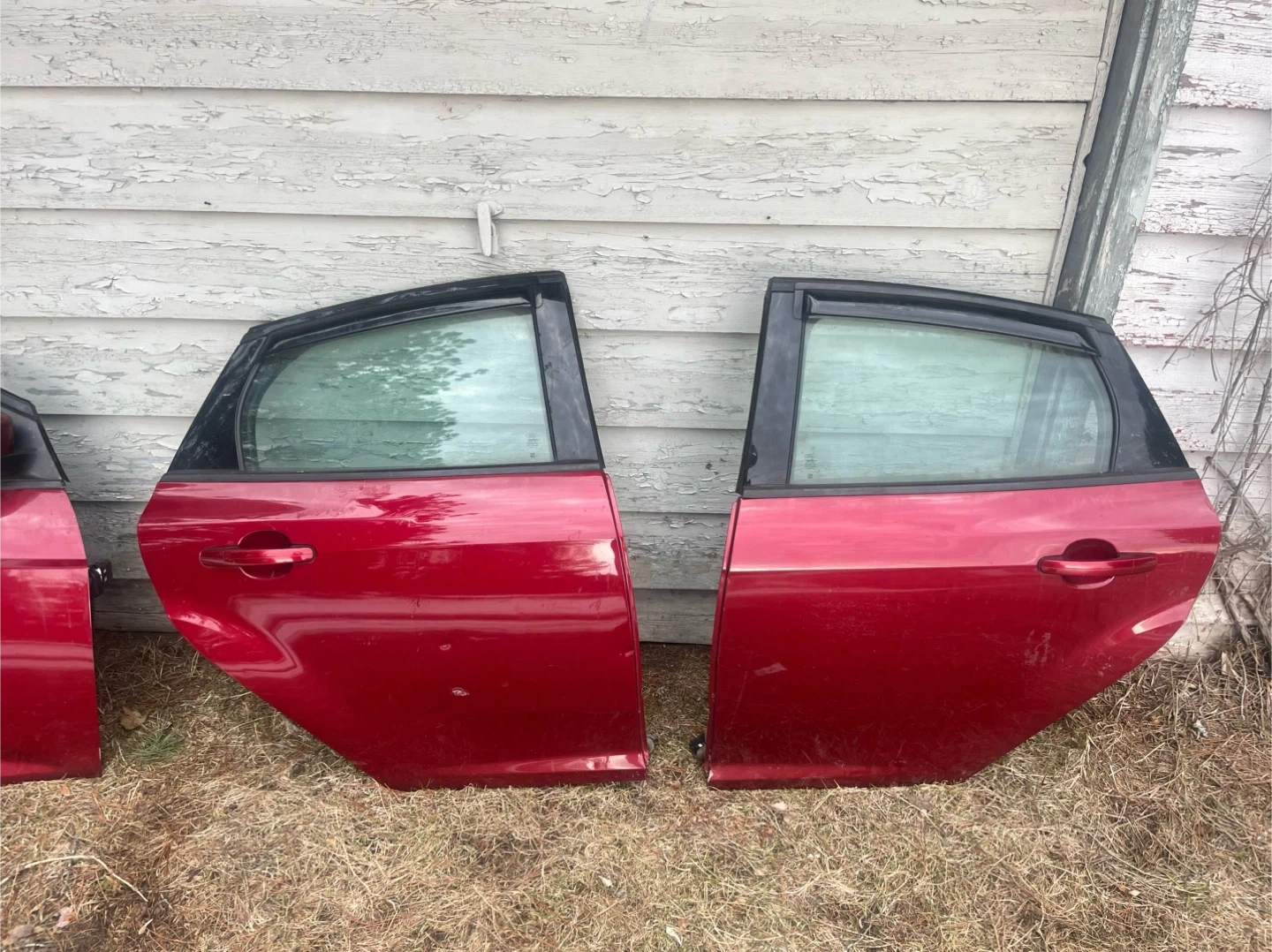 Selling a red car door, looks like it's for a Ford Focus. It's in used condition, as you can see in the photos. Perfect if you need a replacement!