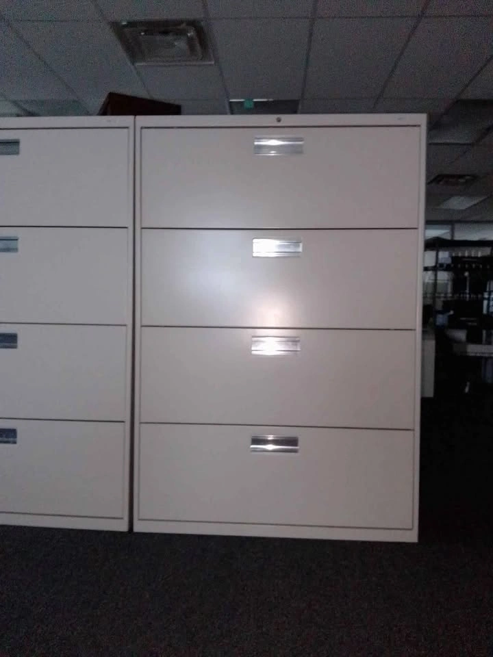 Lateral filing cabinet with 4 drawers. Perfect for the laundry room to hide soaps store bedding etc. or keeps kids items organized. 39 x 30 x 18 there is so much you can do with this. New is anywhere from $800.00 and up. Available to pick up Monday to Friday 8 to 4 NOTE: HEAVY
