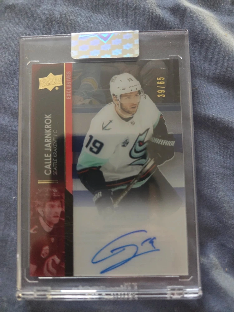 Selling a Calle Jarnkrok hockey card from Upper Deck! It's in great condition and comes in a protective case. A perfect addition to any hockey card collection!