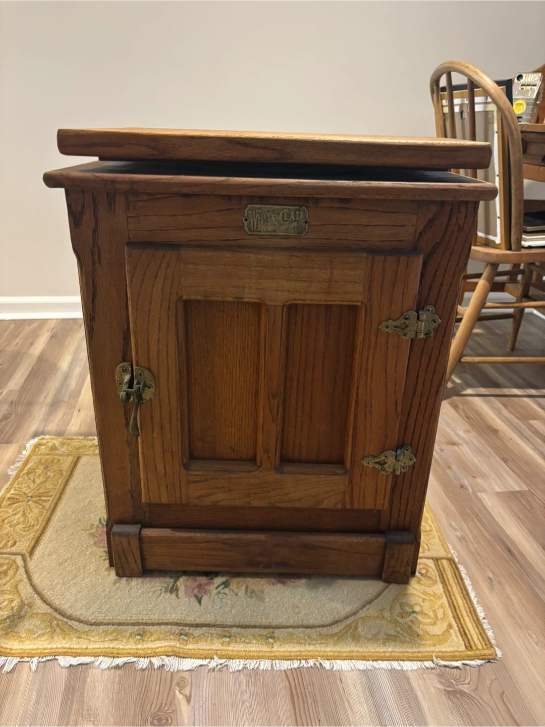 Here's a lovely White Clad ice box! It's made of oak and has a beautiful vintage look. It could make a great addition to your home! Had been converted with a swivel top to accommodate a tv.
