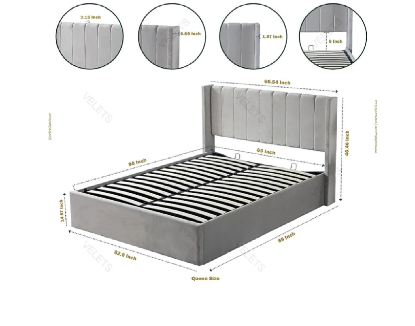 Brand New Wingback Headboard & Hydraulic Lift Storage Bed Frame