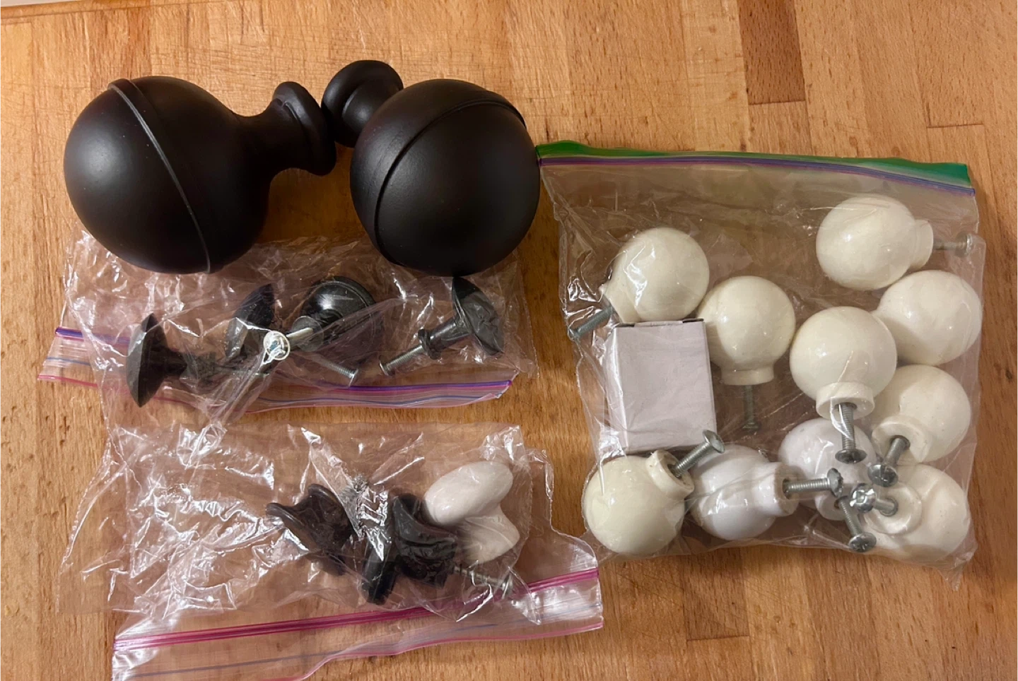 Selling a collection of assorted cabinet knobs and pulls. There are several different styles and colours, perfect if you're looking to update some furniture or cabinets!