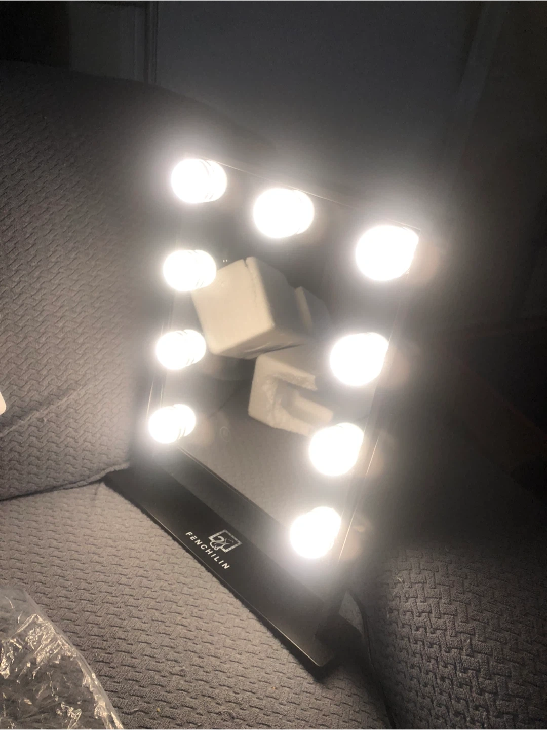 Selling a brand new FENCHILIN Hollywood vanity black Makeup Mirror! It comes with 9 bulbs, a free compact magnifier, and a user guide. It is still in the original packaging, and all components are included!