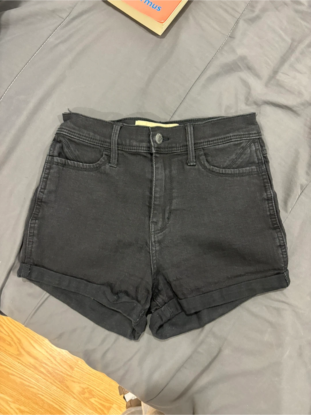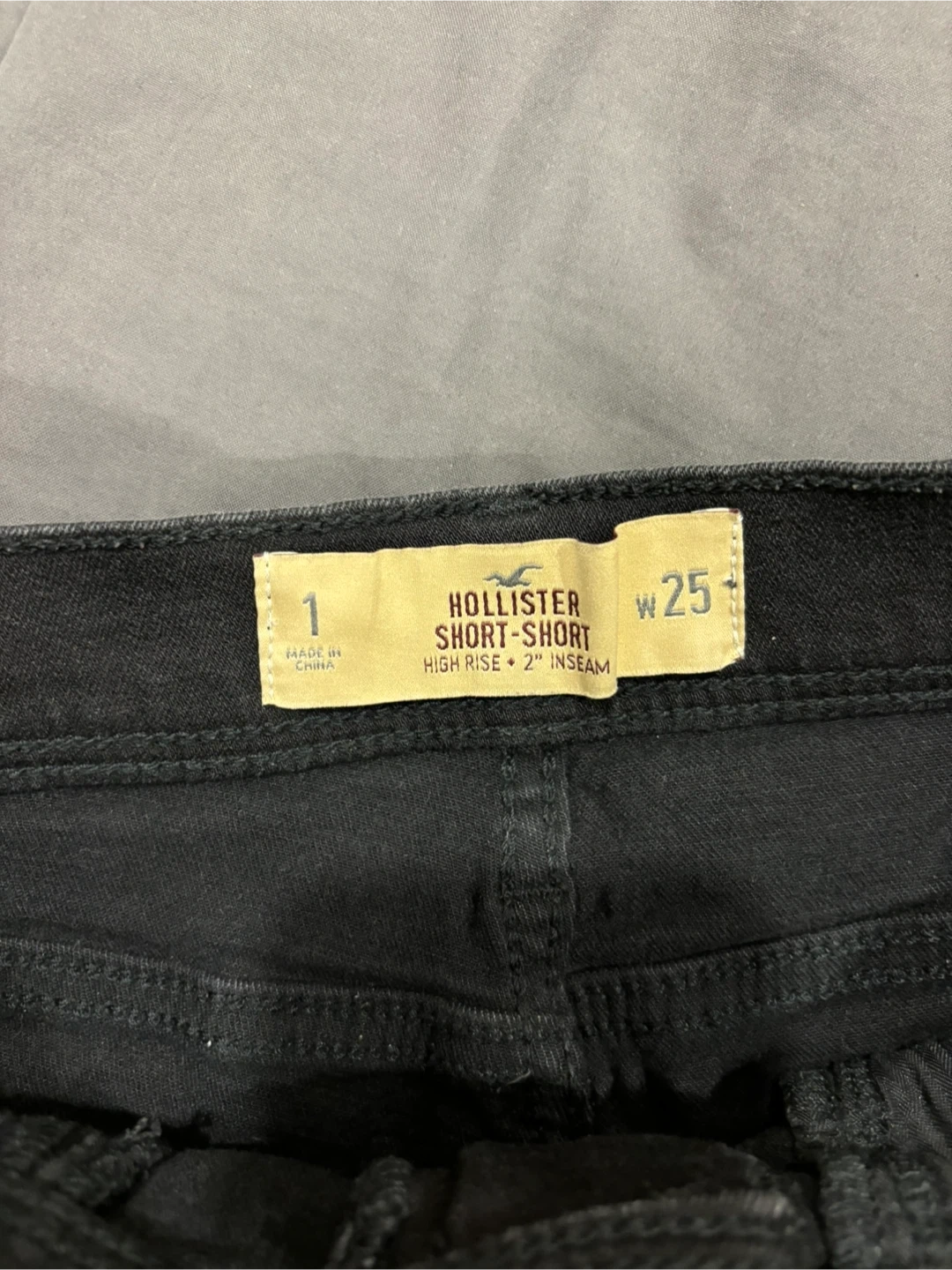 15Selling a pair of Hollister short-shorts in black denim. They're a size 25 with a high rise and a 2-inch inseam.