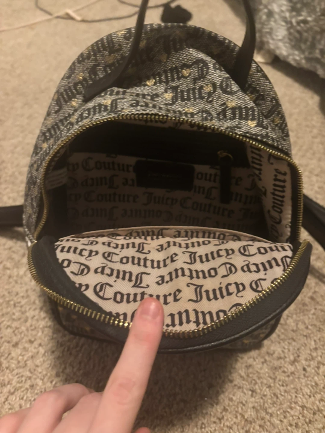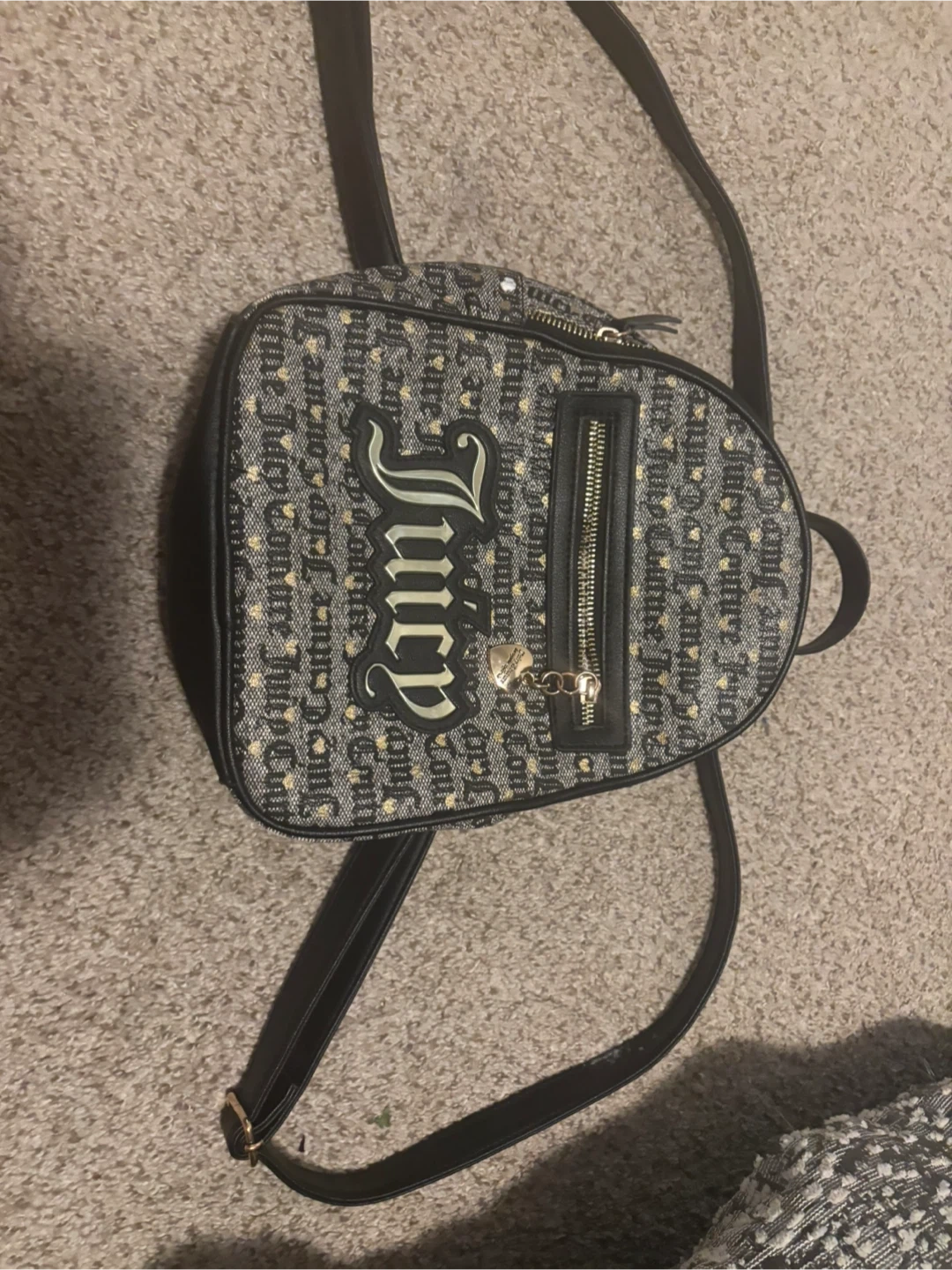 This is a cute Juicy Couture mini backpack! It features the Juicy Couture logo and a heart charm on the front pocket. The inside is lined with Juicy Couture fabric too! Willing to do price drop