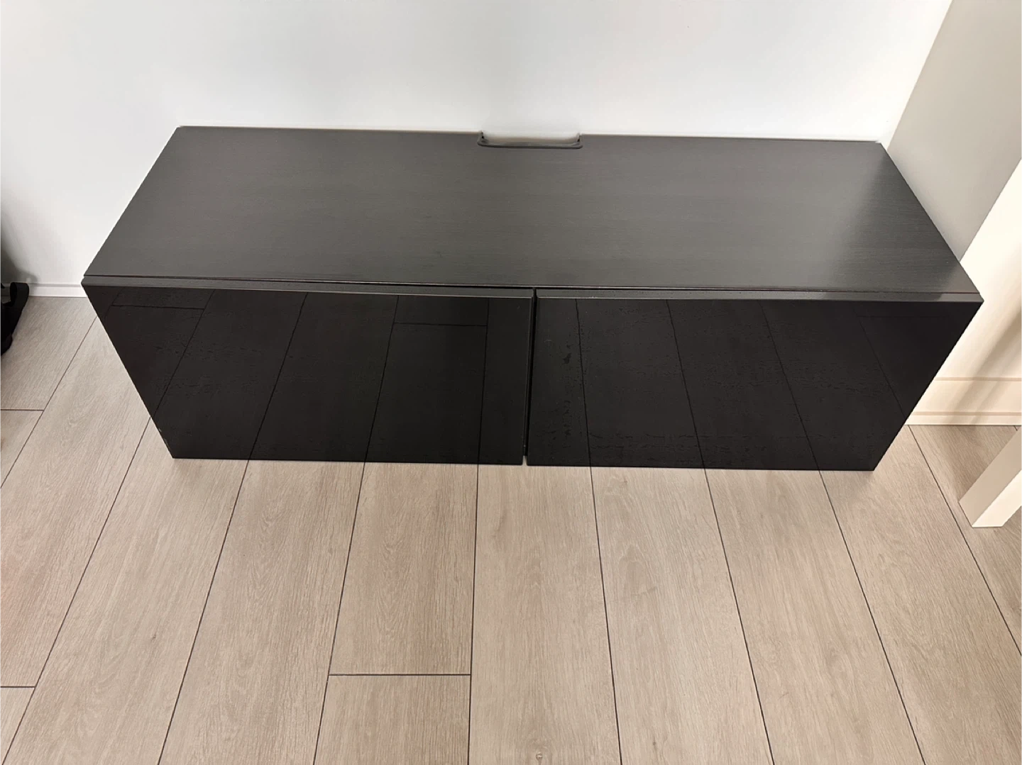 Selling an IKEA BESTA TV unit in black-brown. It's in great shape and ready for a new home! The dimensions are 120 cm (47 1/4") wide, 42 cm (16 1/2") deep, and 38 cm (15") high, its brand new 2 months old, it’s very small for my place that’s why selling it.