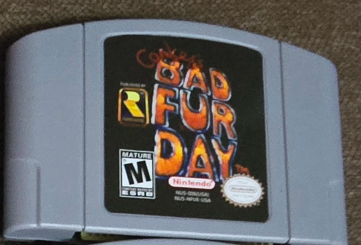Selling a Conker's Bad Fur Day game for the Nintendo 64! Rated M for Mature by the ESRB. fake copy