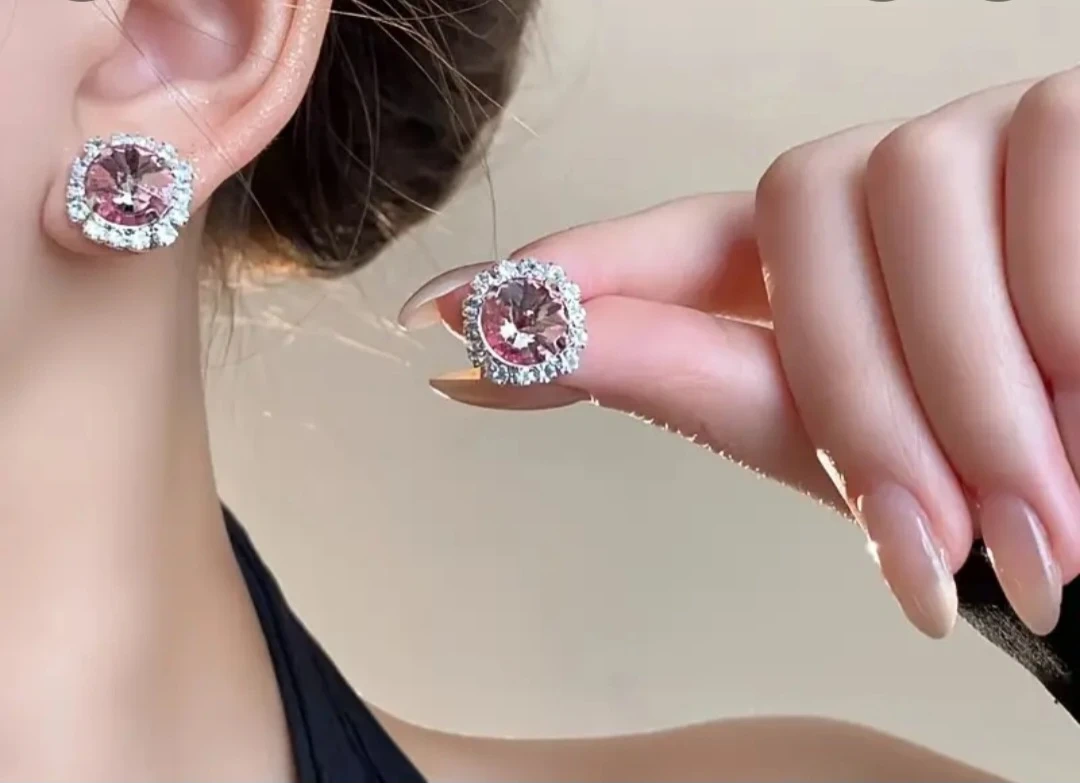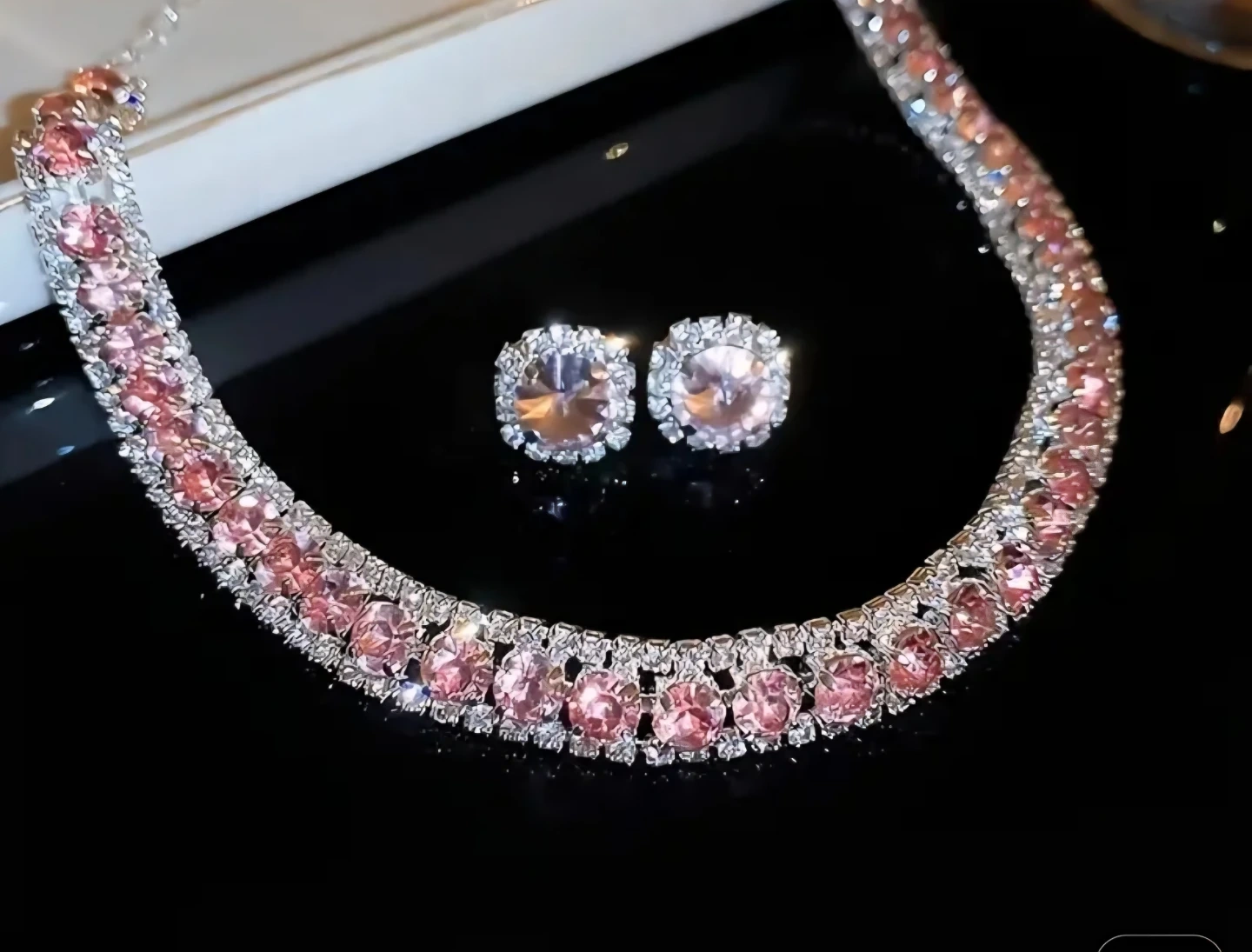 Selling a beautiful matching necklace and earrings set! The set features pink rhinestones, perfect for adding a touch of sparkle to any outfit Perfect for holiday Season