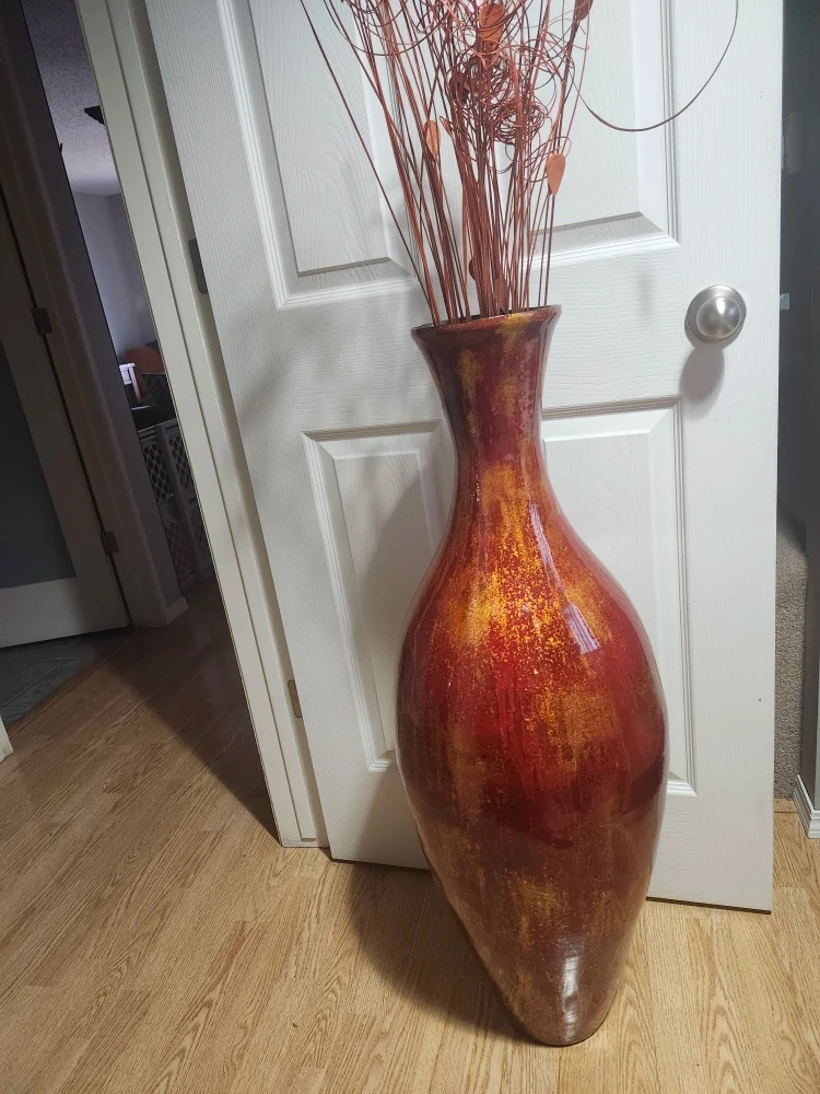 This is a beautiful floor vase with a decorative branch arrangement. It's a great piece to add some flair to any room!