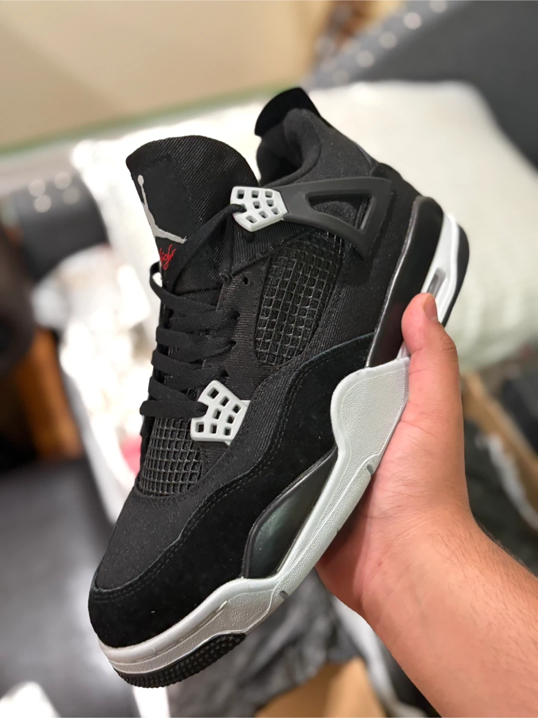 Selling a pair of Nike Air Jordan 4 Retro in the black canvas colour way these are in great condition and come with the box. In these I have both size 10 and 11 if you are interested, you can let me know.